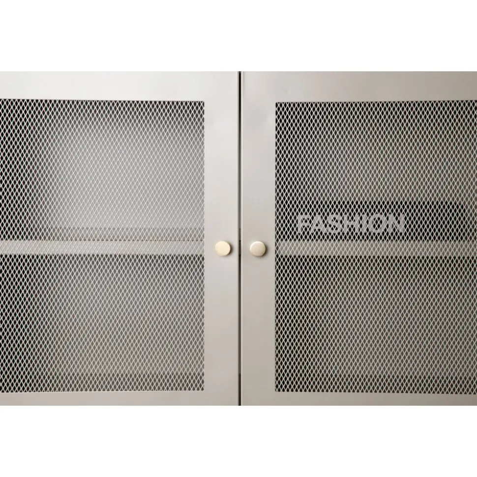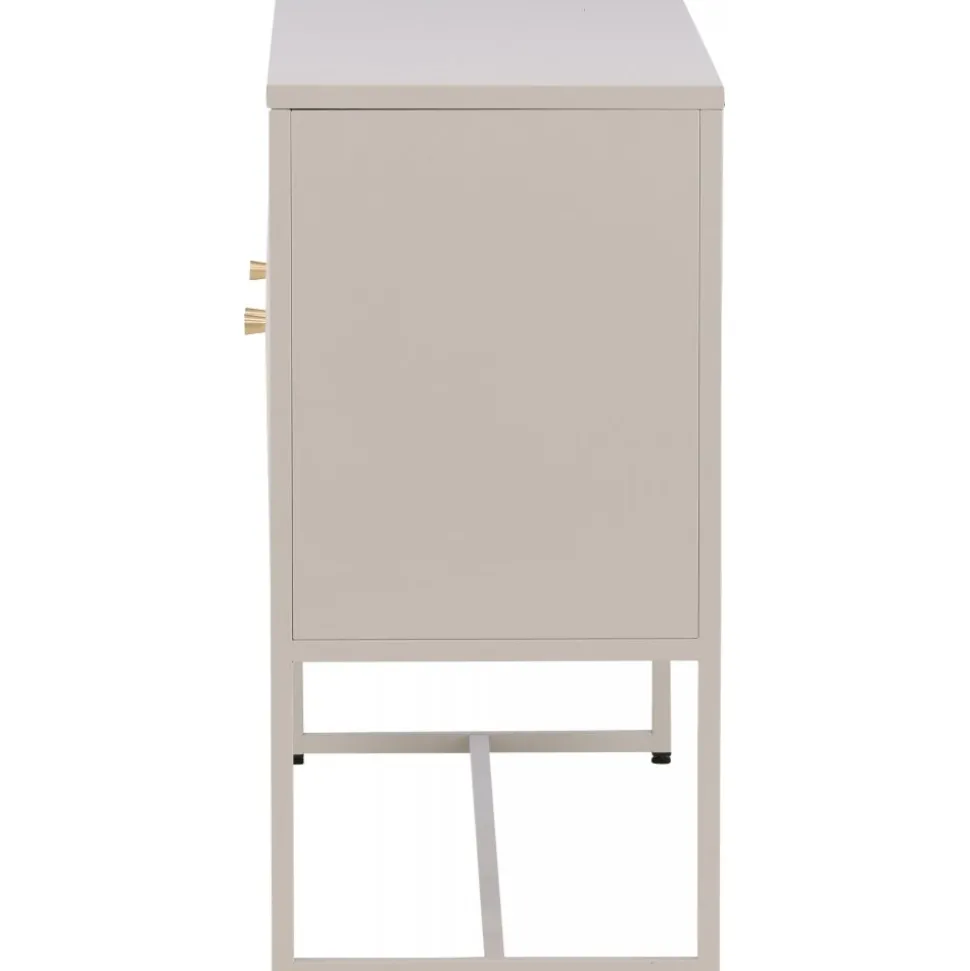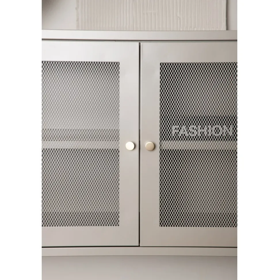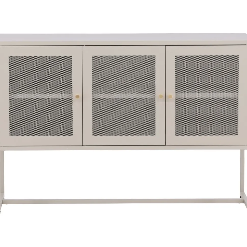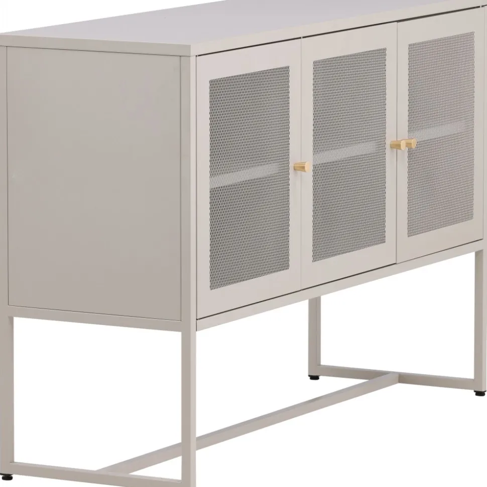 Trerike – ett modernt skåp i en tuff industriell design med läckra nätdörrar och ben tillverkade i beige pulverlackerad stål med 2 smarta hyllplan för avlastning. Skåpet lyfts upp av smala, höga ben som skapar en luftig känsla och underlättar även för dammsugaren. Den perfekta förvaringsmöbeln för allt du önskar – fyll med porslin, böcker eller vackra dekorationer. Skåpets smidiga storlek och eleganta utsida gör den lättplacerad och passar bra in i de flesta rum i hemmet, så möblera efter egna behov och önskemål.