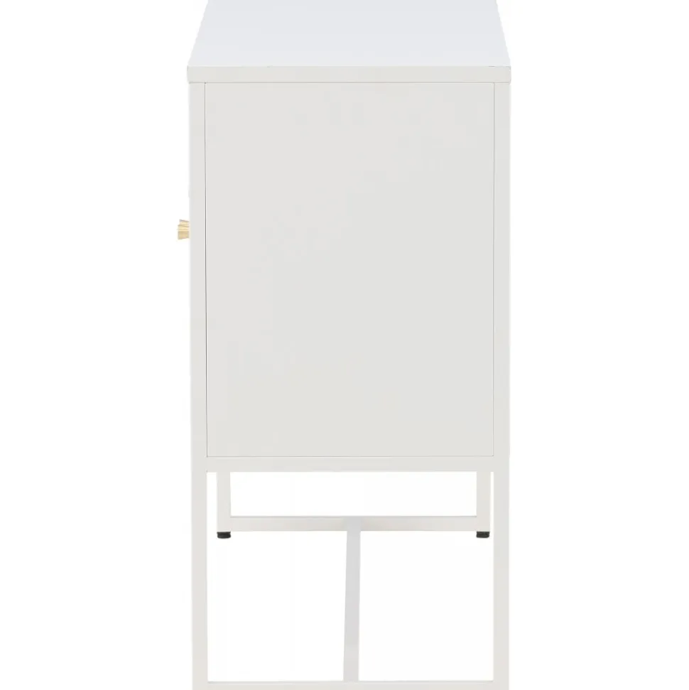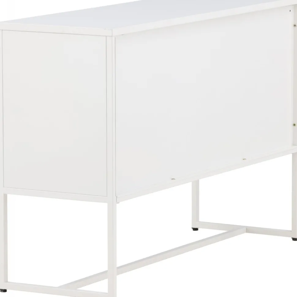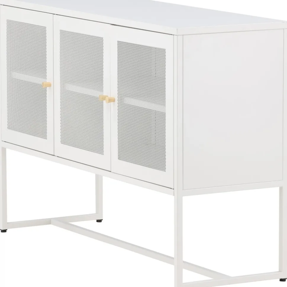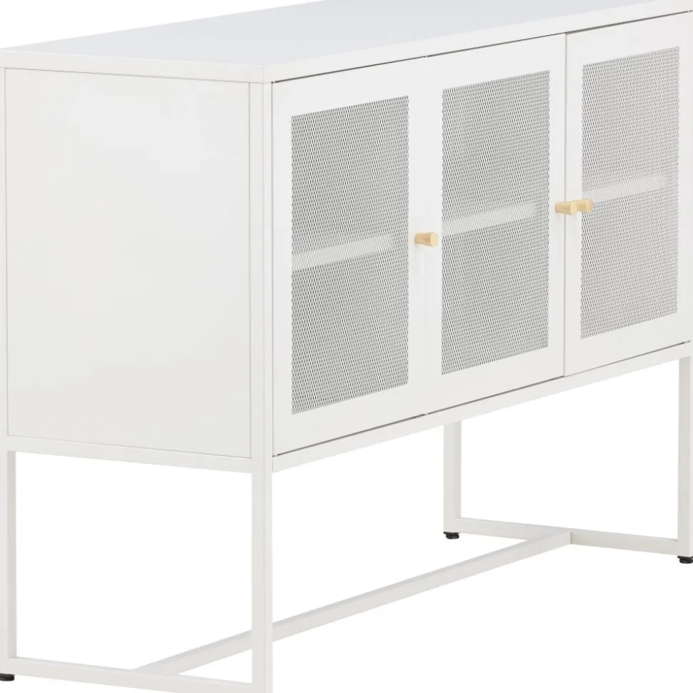 Trerike – ett modernt skåp i en tuff industriell design med läckra nätdörrar och ben tillverkade i vit pulverlackerad stål med 2 smarta hyllplan för avlastning. Skåpet lyfts upp av smala, höga ben som skapar en luftig känsla och underlättar även för dammsugaren. Den perfekta förvaringsmöbeln för allt du önskar – fyll med porslin, böcker eller vackra dekorationer. Skåpets smidiga storlek och eleganta utsida gör den lättplacerad och passar bra in i de flesta rum i hemmet, så möblera efter egna behov och önskemål.