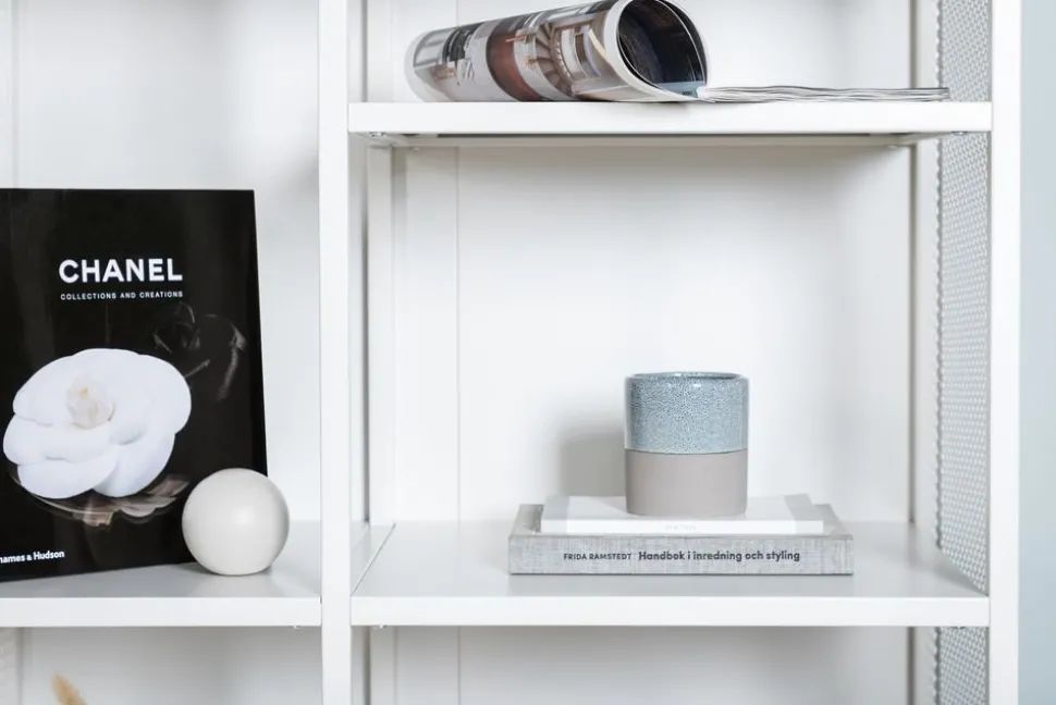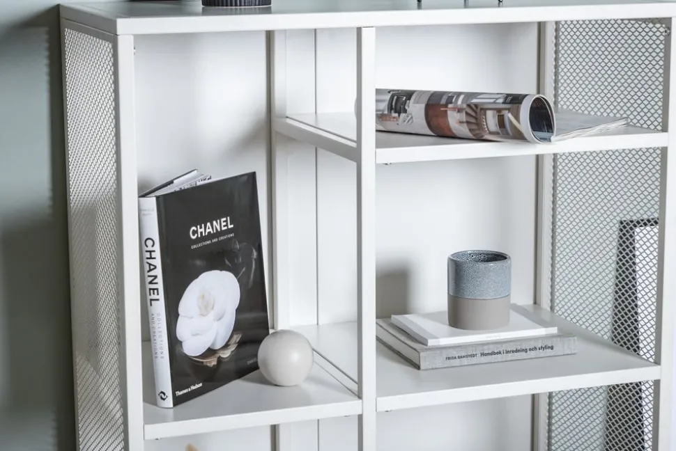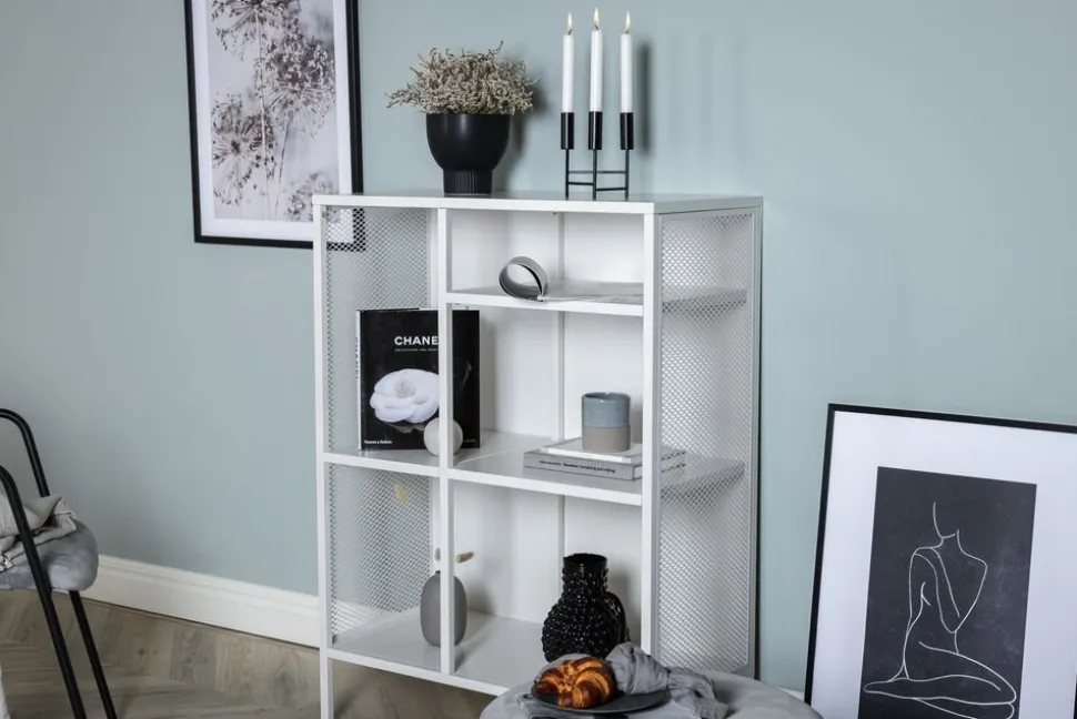 Praktiskt helt i vit pulverlackerad metall. Skåpet är utrustat med 3 hyllplan och nätade sidor, vilket gör det luftigt. Generöst med utrymme undertill.