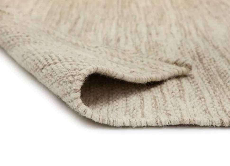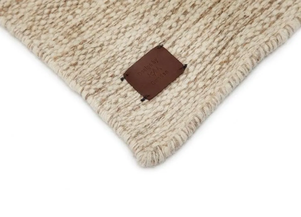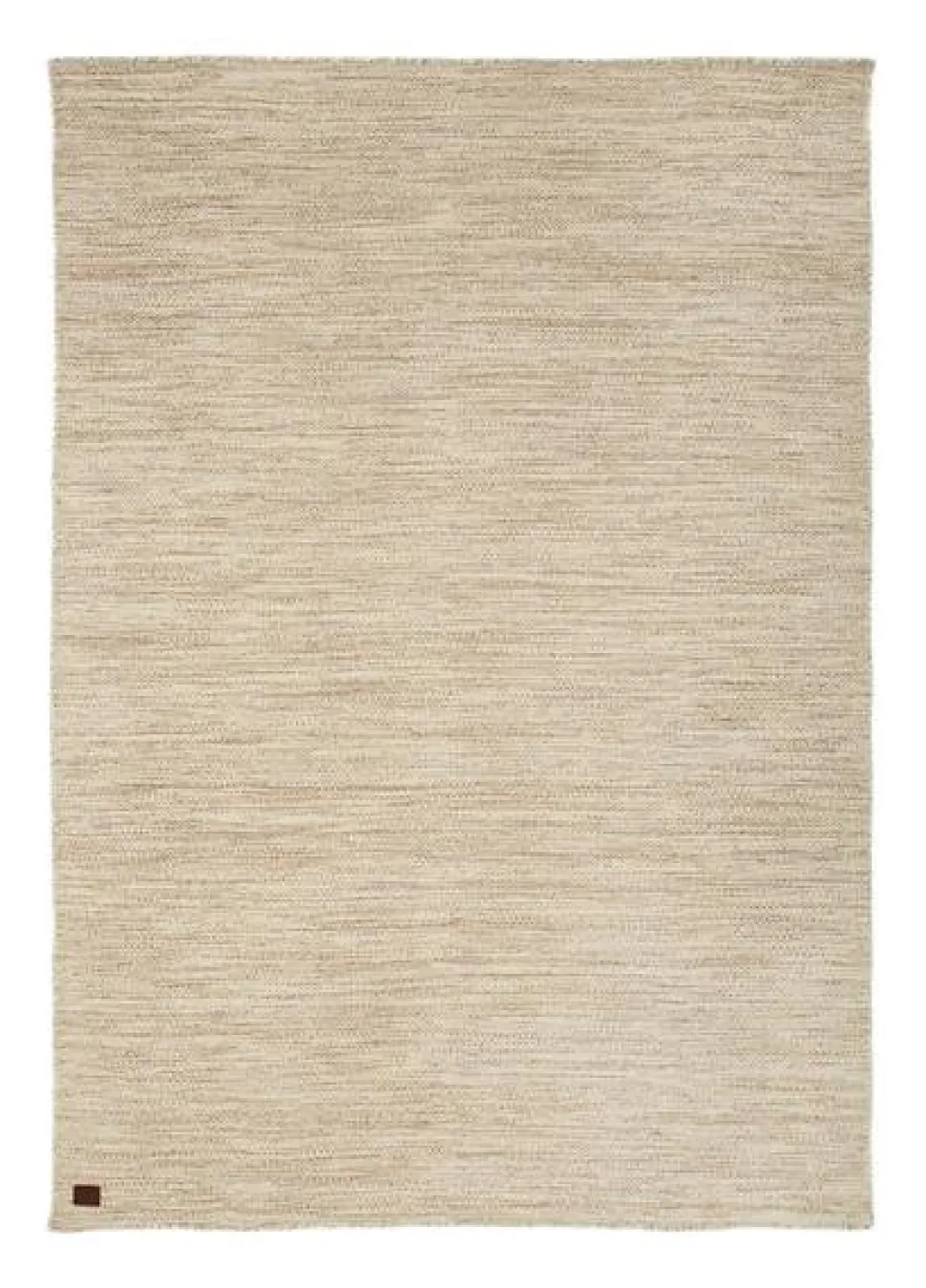 Tamela är en handvävd ullmatta som har en snygg melerad finish i cremevita och ljusbeige toner. Mattan har en dekorativ läderdetalj med tryck i nedre hörnet, samt att mattan är vändbar och går att använda på båda sidor. Tamela är en slitstark matta som är tålig och lätt att rengöra, detta eftersom ull är ett material som är naturligt smutsavvisande. Eftersom alla handvävs så kan det variera något mellan varje exemplar, vilket gör alla mattor unika.