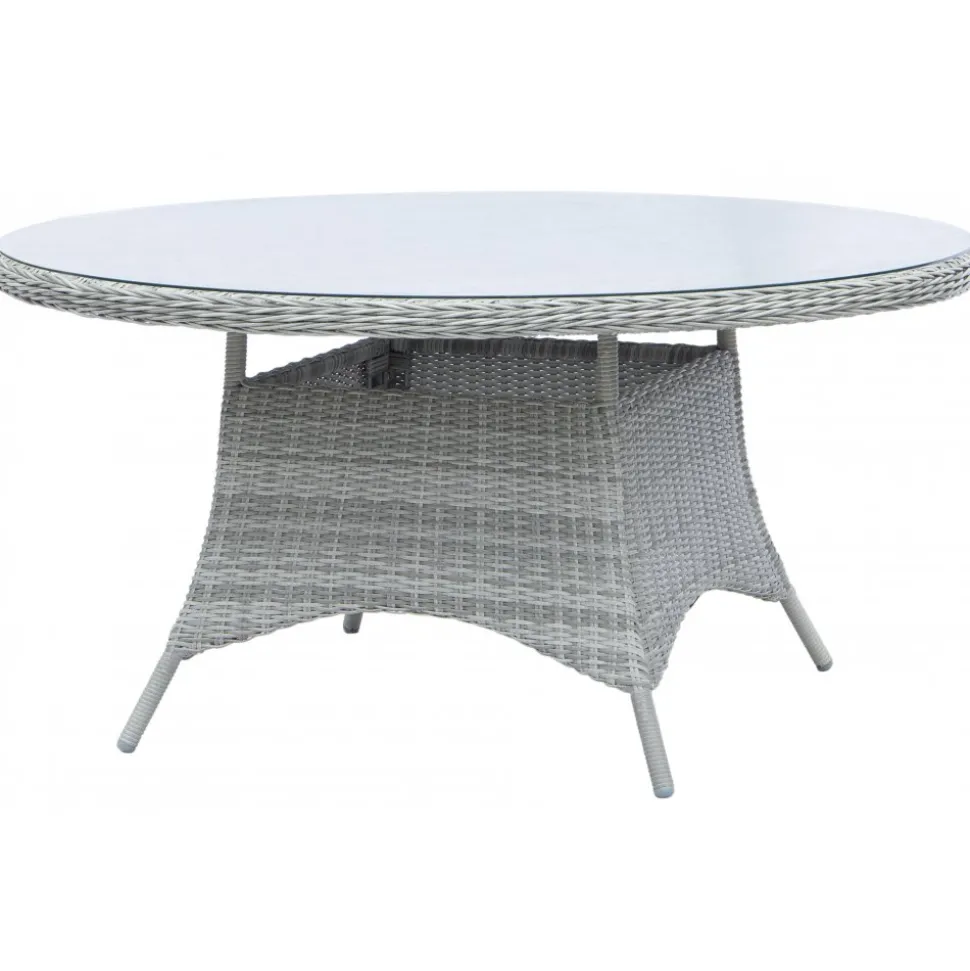 Jacksonville är ett elegant matbord i grå konstrotting med en robust aluminiumstomme och en stilren glasskiva. Det runda bordet ger en inbjudande känsla och passar perfekt för både ute- och inomhusmiljöer.
