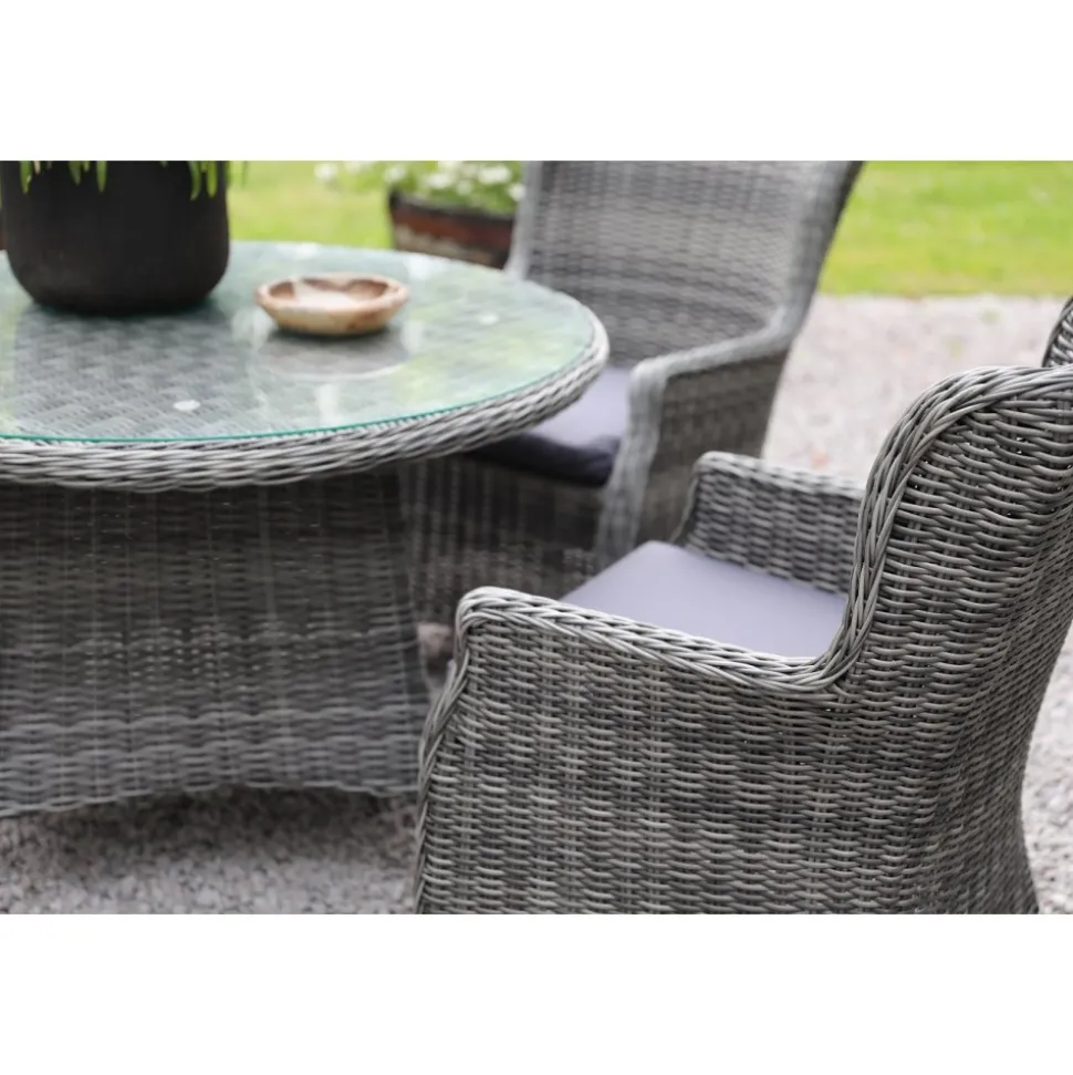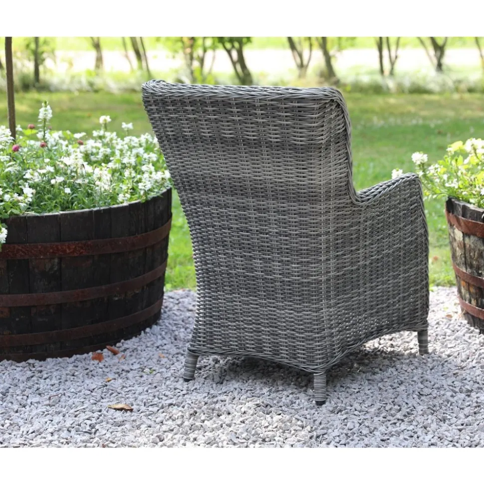 Jacksonville fåtölj i grå konstrotting, stomme av aluminium. Mörkgrå dynor av polyester för god sittkomfort.