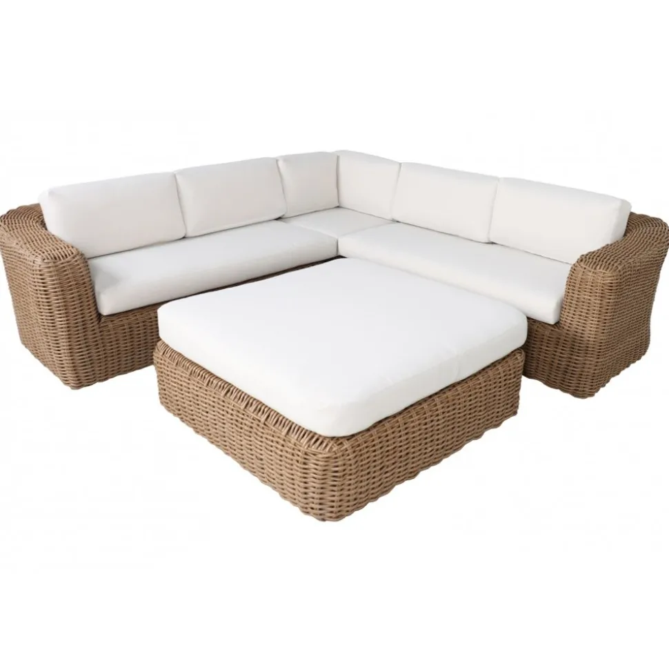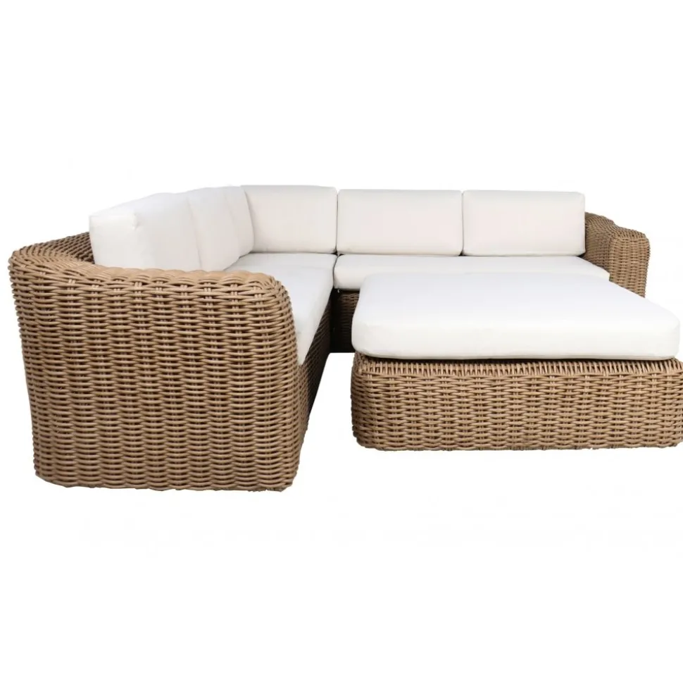 Soffgruppen är tillverkad av rund, naturfärgad konstrotting som ger en tidlös och elegant känsla. De extra tjocka sittdynorna i ljusbeige vädertåligt tyg ger en mjuk och behaglig sittupplevelse, samtidigt som de är anpassade för att klara utomhusbruk. St Tropez är det självklara valet för en stilfull och bekväm uteplats.