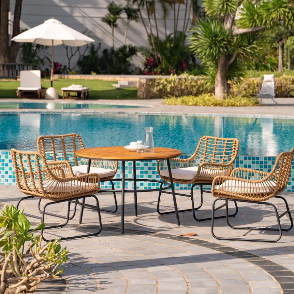 Trädgårdsstolen Sommar har en härlig avslappnad känsla i sin design som lockar en att slå sig ner. Här kan du luta dig tillbaka i dessa bekväma stolar med inkluderade dynor för en skön fikastund. Stilen är något exotisk och bohemisk och kan passa in i många miljöer som behöver en dos av sommarkänsla.