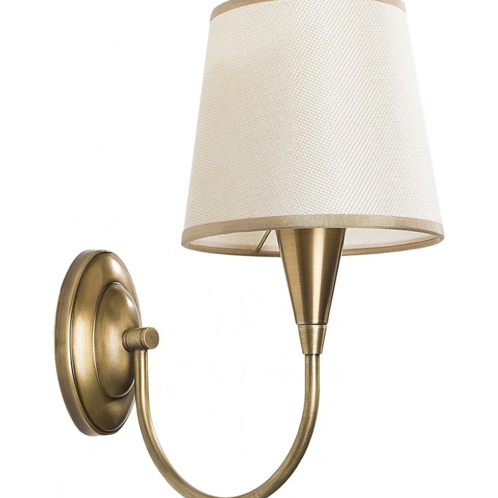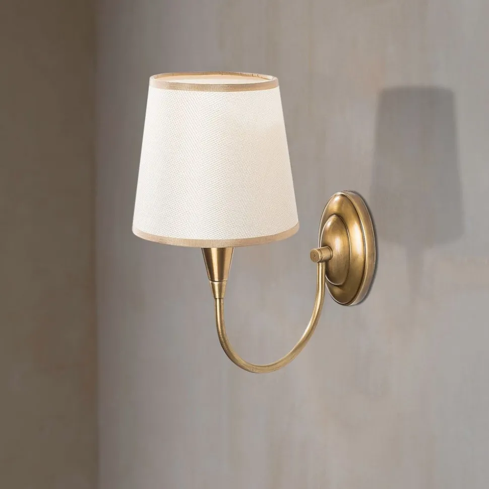 Vägglampa av metall och tyg. Ljuskälla ingår ej.