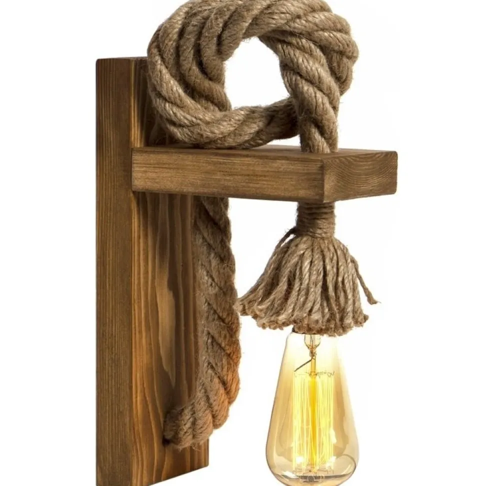Vägglampa av gran och jute. Ljuskälla ingår ej.