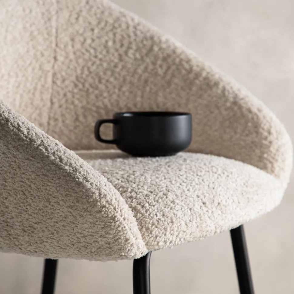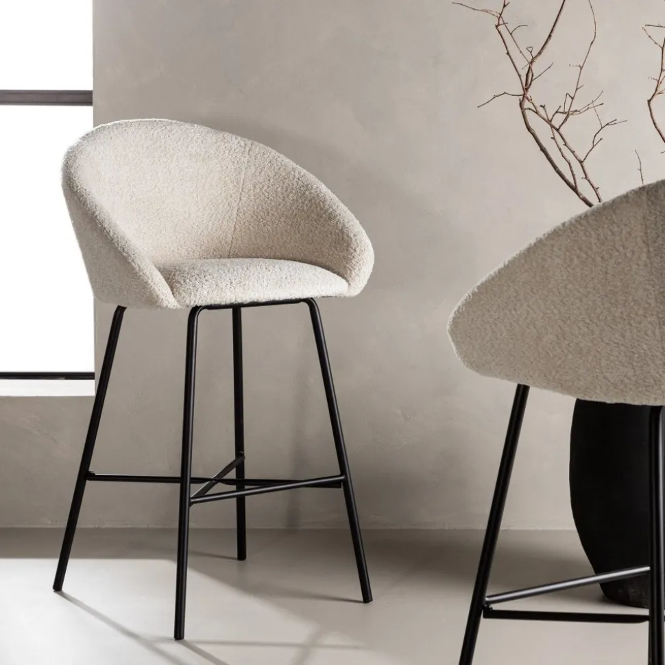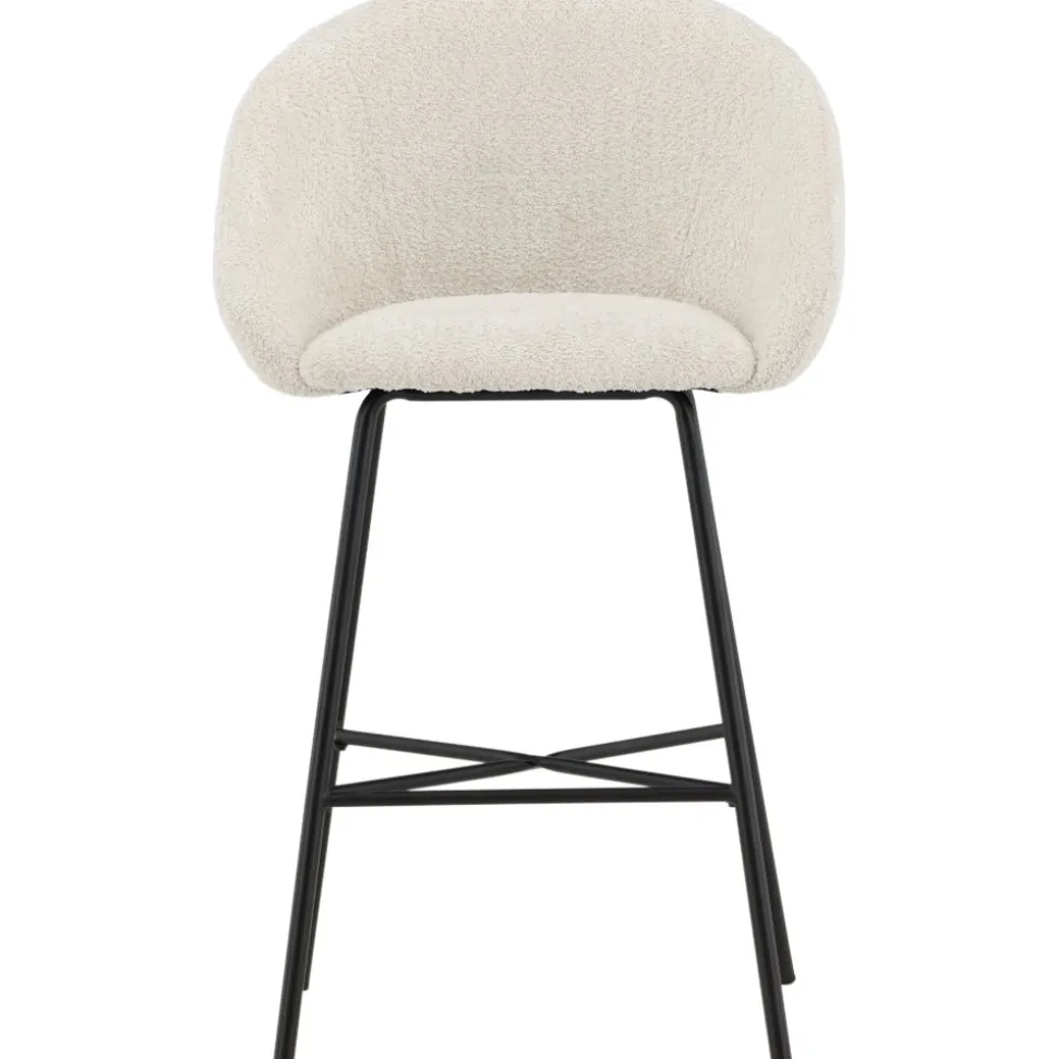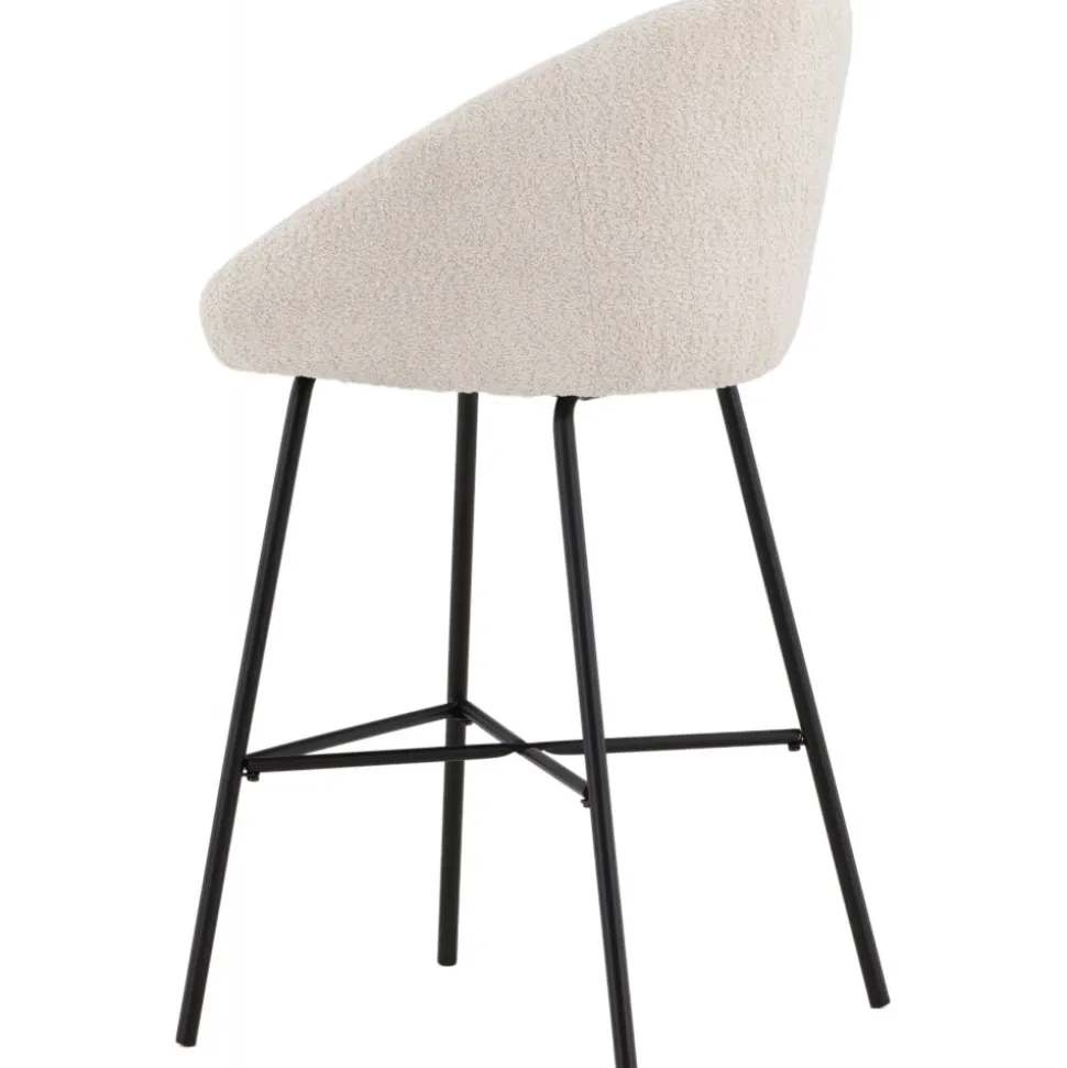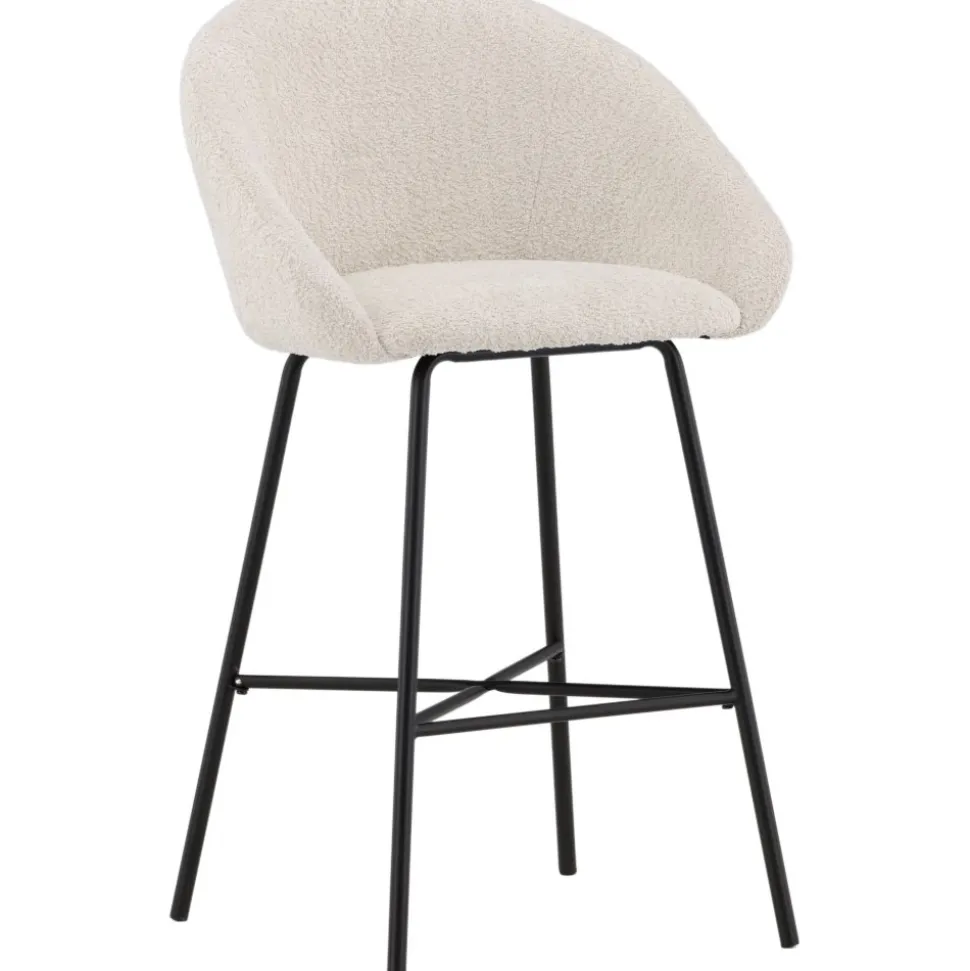 Smakfull i skandinavisk design som garanterat kommer skapa ett inbjudande blickfång i ditt hem. Med en mjuk rund sits i stoppat, vitt teddytyg och integrerat fotstöd i svart stål är den här barstolen lika stilsäker som bekväm att sitta i. Möblera kring det höga matbordet eller vid bardisken i köket och förläng trivsamma stunder tillsammans! Levereras omonterad.