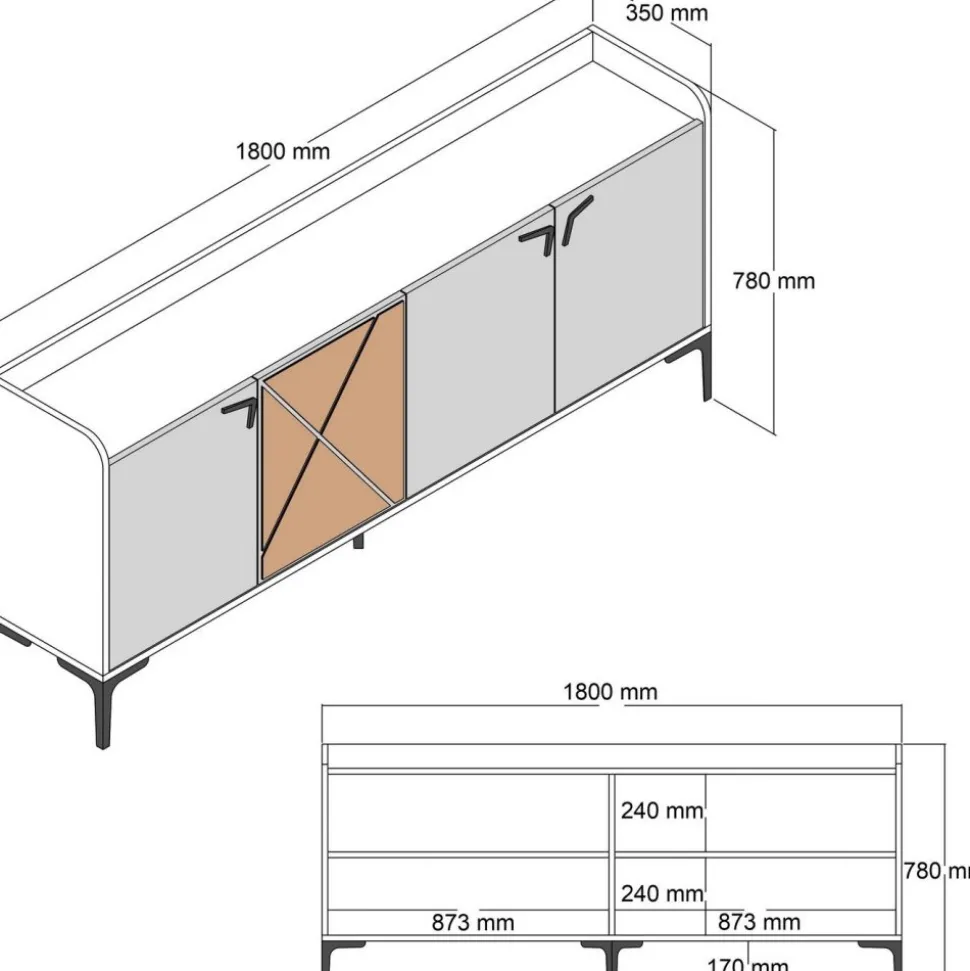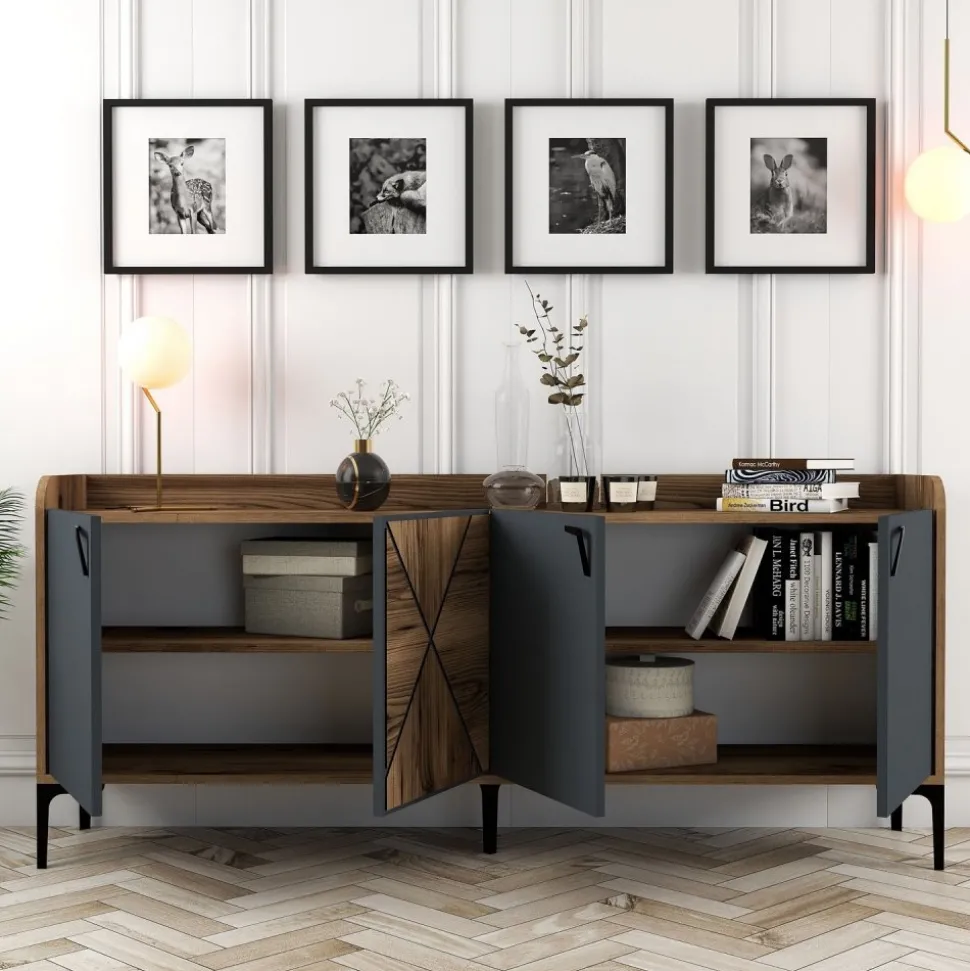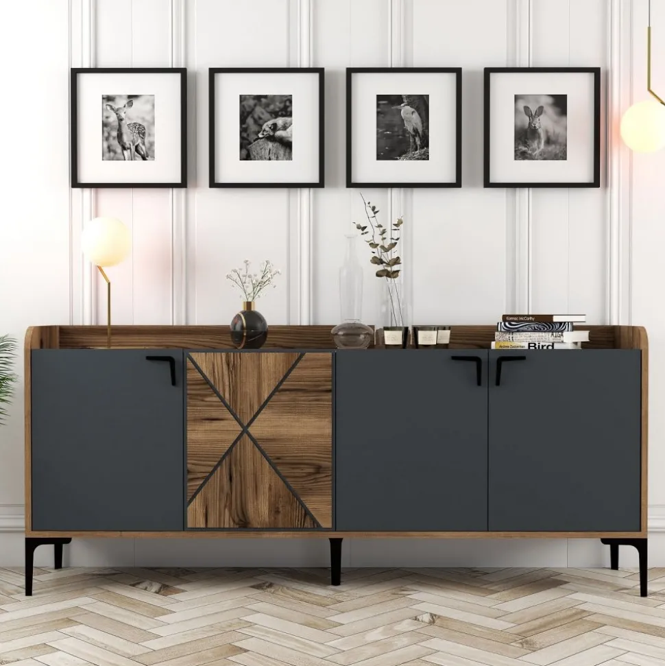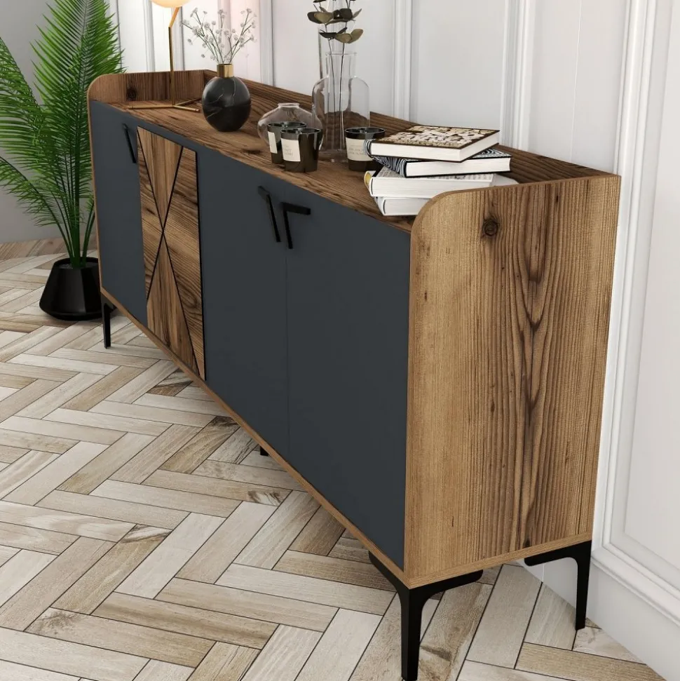 Skänk av trä och metall.