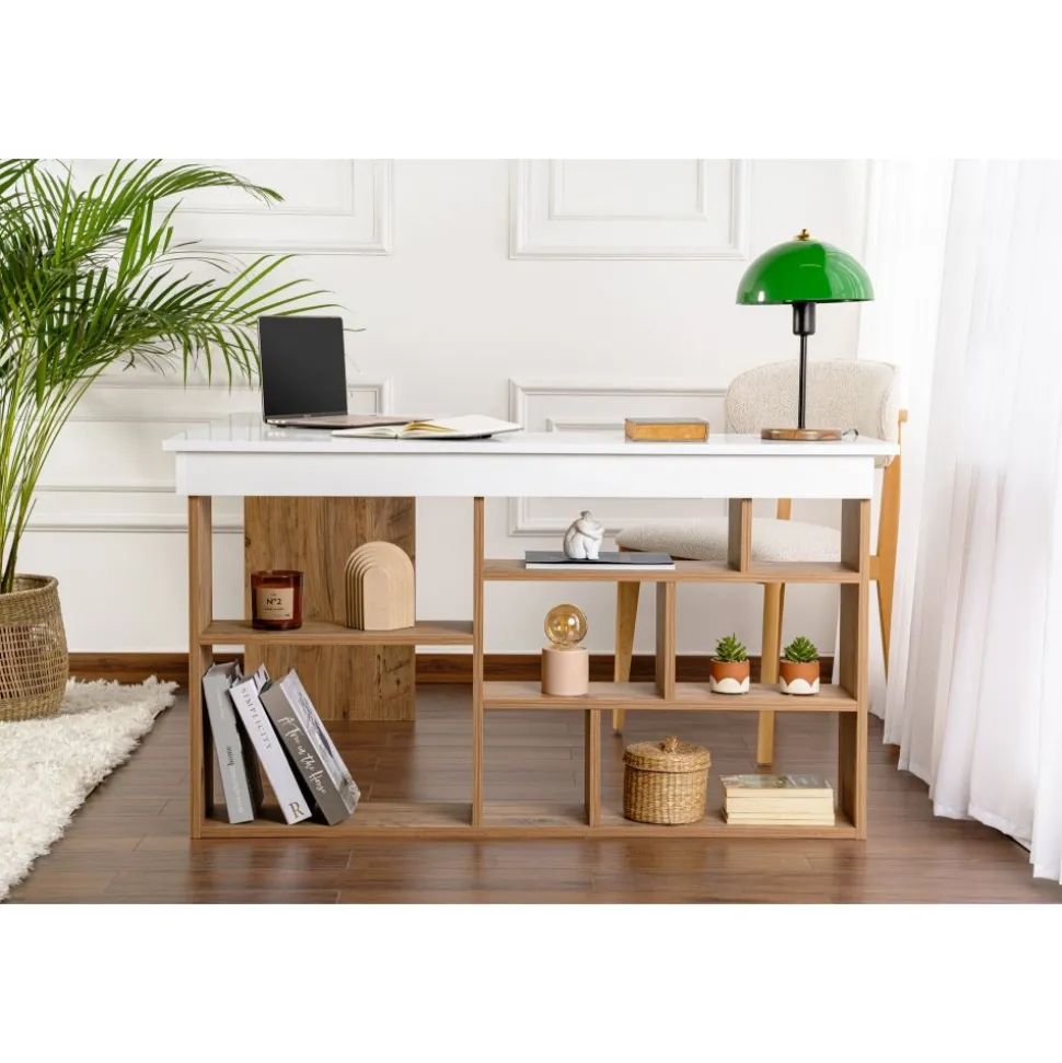 Skrivbord av melaminbelagd spånskiva.