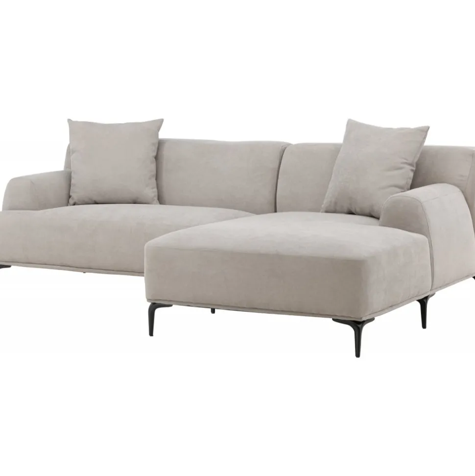 Höj stilnivån i ditt hem med en modern, grå som sannerligen imponerar med sin lyxiga design! Viskan är vår fantastiska tresitssoffa med divan. Den gråa kulören värmer upp atmosfären och det slitstarka polyestertyget är enkelt att hålla fräscht med hjälp av våra skötselråd. Soffan lyfts upp av smala ben i svart metall vilket både ger ett luftigt, minimalistiskt intryck och underlättar för dammsugaren. Två kuddar ingår som bistår soffan som bekvämt armstöd eller stöd för ländryggen. Den här soffan har helt enkelt tänkt på allt och kommer garanterat göra succé i ditt hem, antingen intill fåtöljer framför brasan eller solitär framför tv:n. Bara du bestämmer vad som passar bäst! Levereras omonterad.