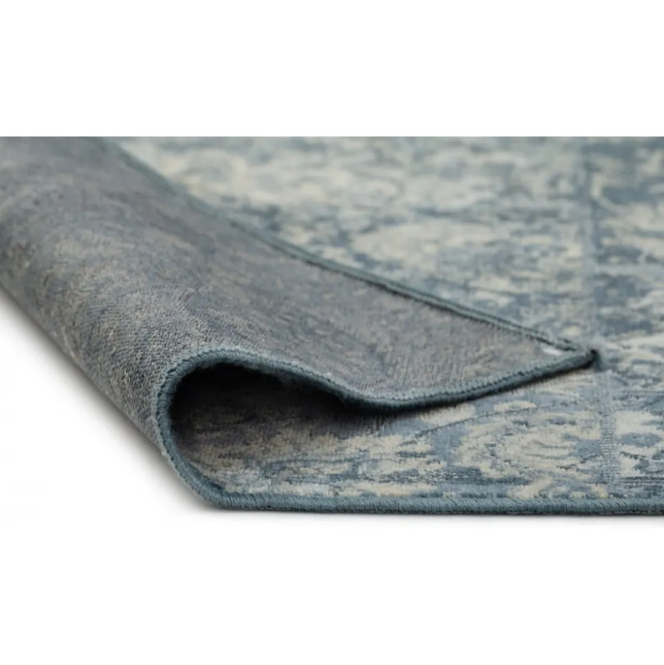 Casablanca Patch är en mönstrad konstsilkematta som passar lika bra i vardagsrummet som i sovrummet. Mattan har en blå bottenfärg med ett vintage mönster samt langettering i matchande färg, som ger ett elegant intryck. Eftersom Casablanca Patch är vävd i 100% viskos så har mattan en jättefin lyster som ger en skimrande effekt, beroende på hur ljuset faller.
