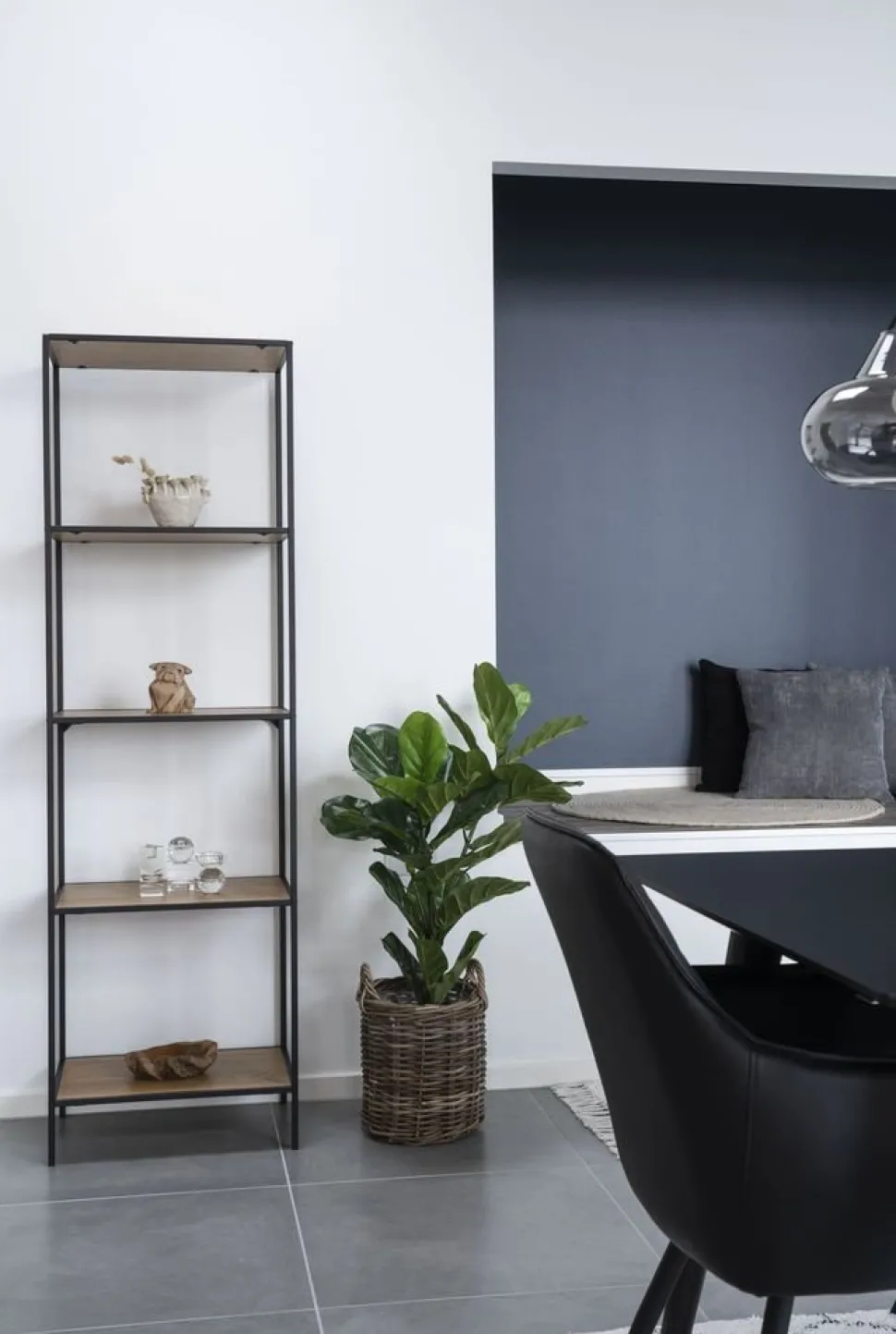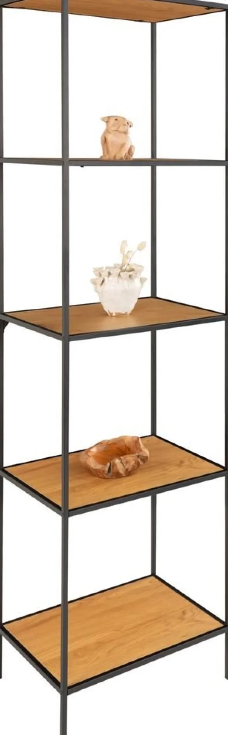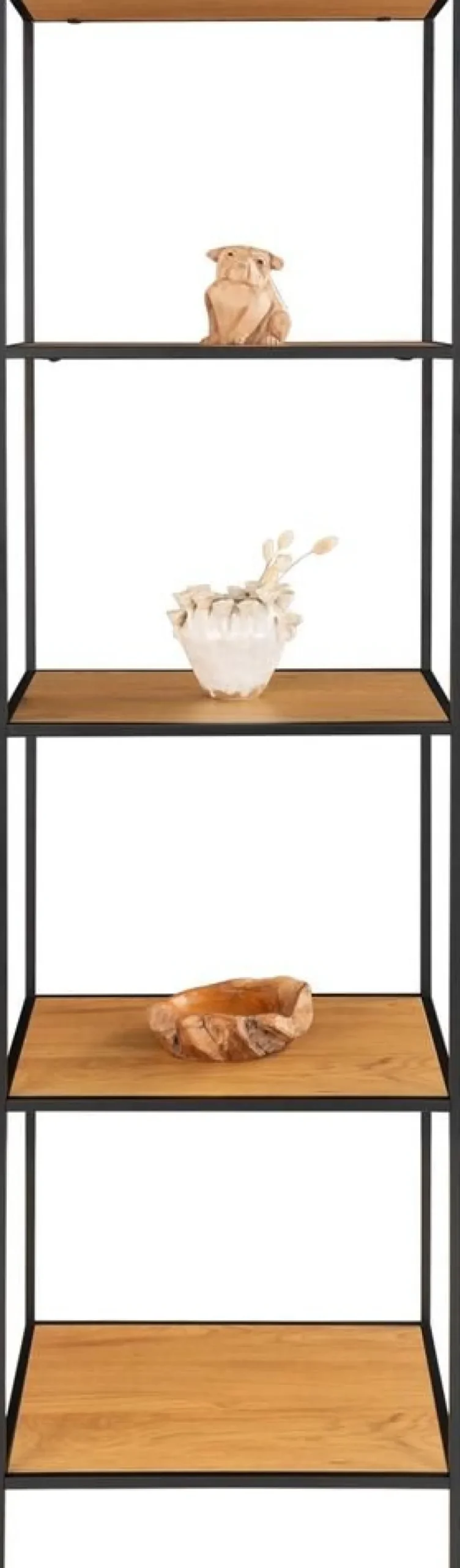 Hylla i svart med fem hyllplan i ek imitation.