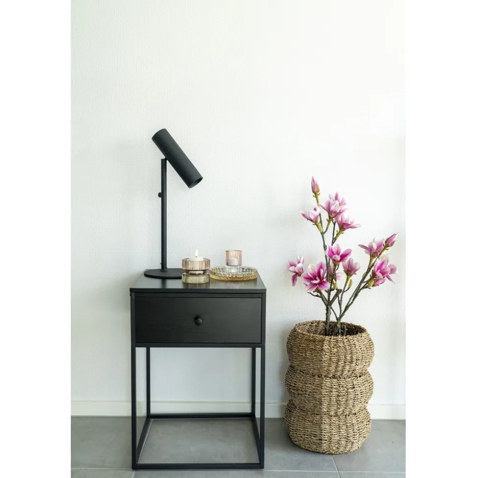 Sängbord av stål och MDF.