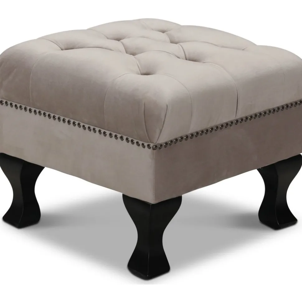 Fotpall klädd med ljusgrå sammet. Modellen har sits med kallskum och inbakad pocketspringkärna.