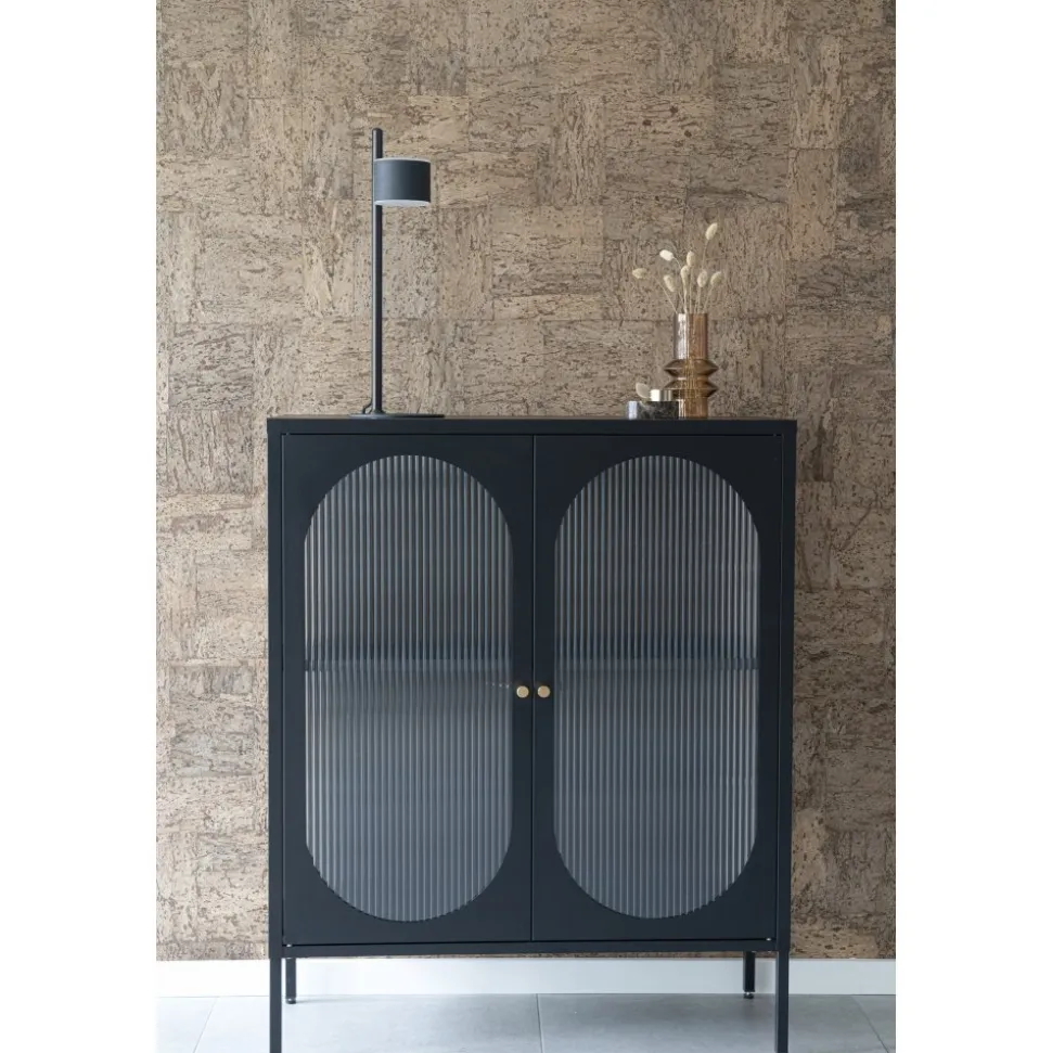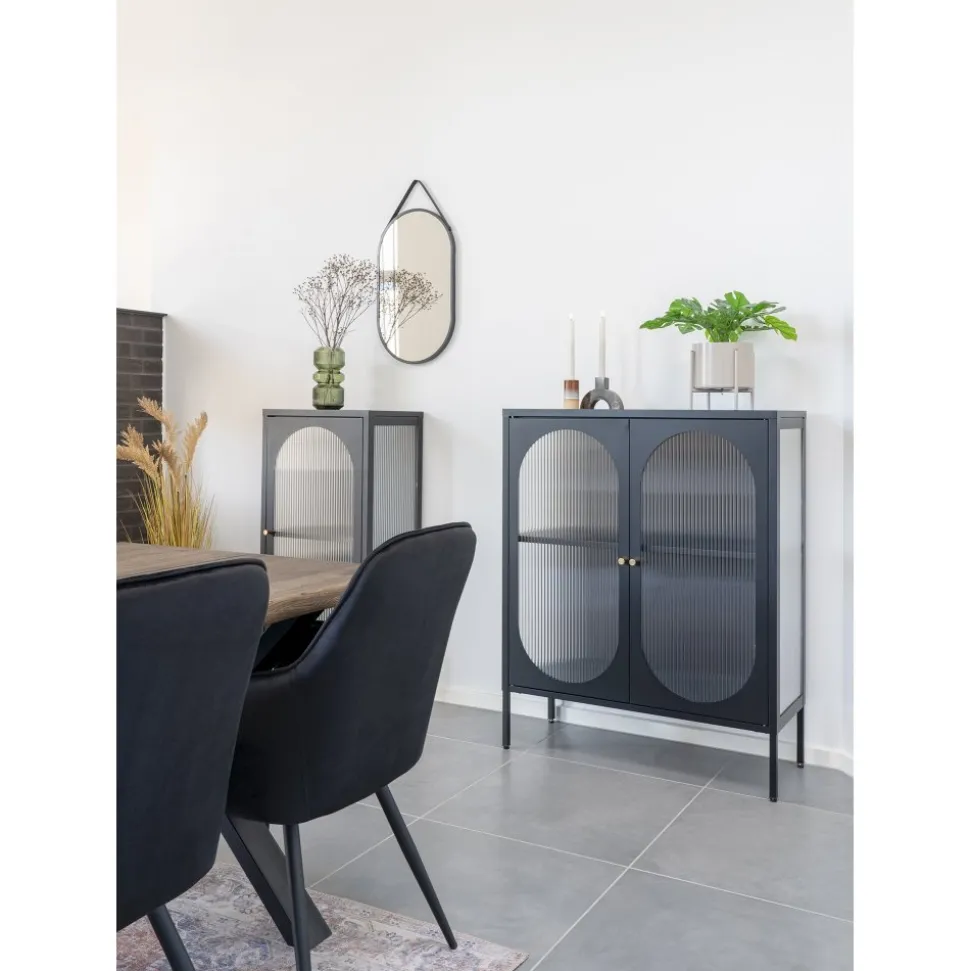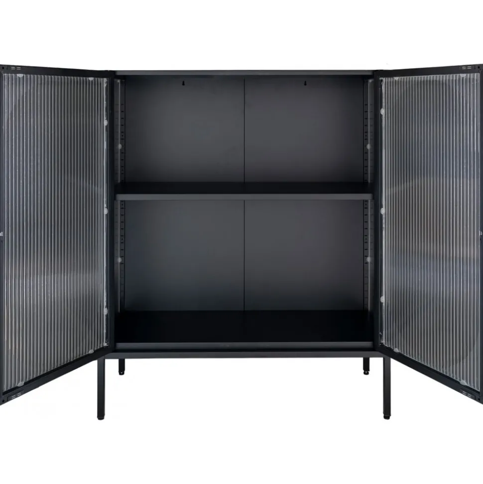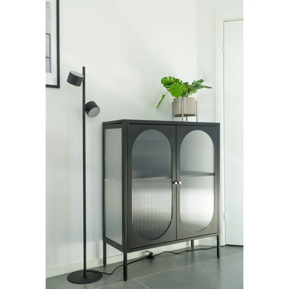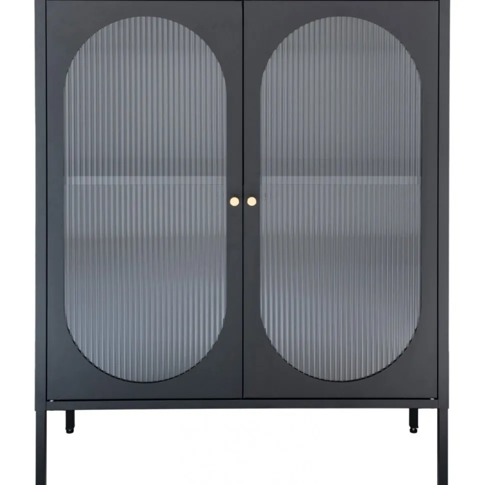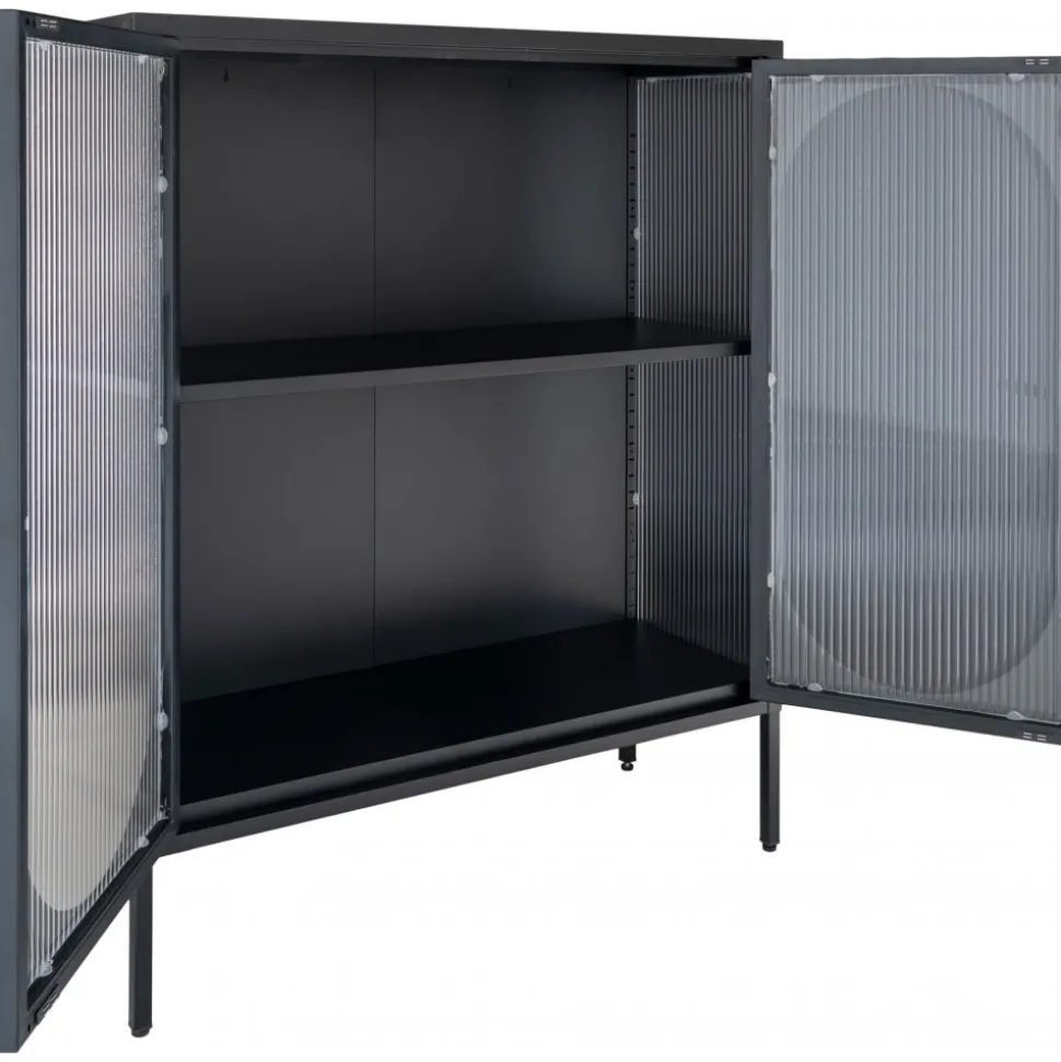 Vitrinskåp av stål och glas. Viss montering krävs.