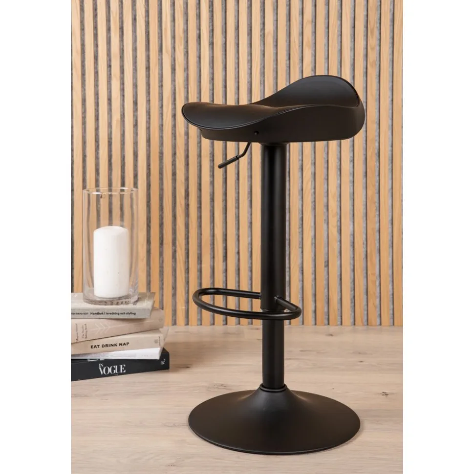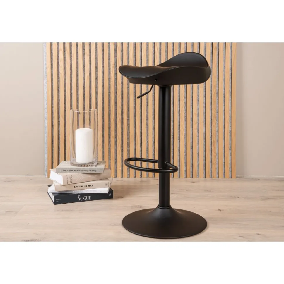 Klassisk som aldrig går ur tiden. Barstolen har en stilsäker design med en trumpetfot i svart stål och en enkel sits i svart plast. Placera intill baren i köket för att välkomna lite extra sällskap eller kring ett högre matbord – lika användbar som praktisk helt enkelt! Den här barstolen förlänger de gemensamma stunderna i hemmets hjärta!