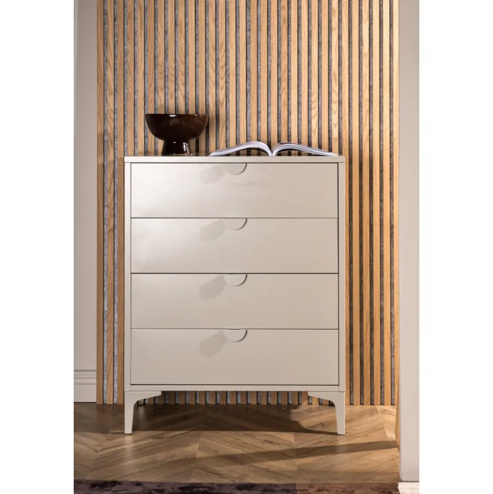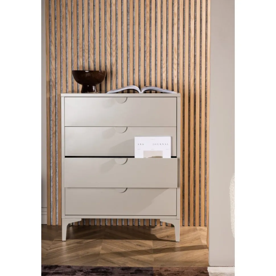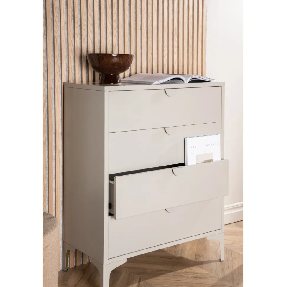 Den perfekta byrån för smart förvaring. Alexander har en robust och klassisk utformning i beige stål – en genomtänkt design som står sig över tid. Byrån har fyra lådor för dold förvaring och passar perfekt både som garderob i sovrummet eller i vardagsrummet som avlastningsyta. De smala benen som lyfter upp skåpet skapar en luftig känsla och underlättar även för dammsugaren. Stilrent och smart – Vad mer behöver man?