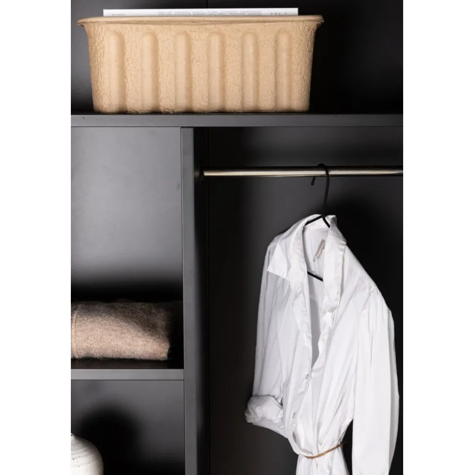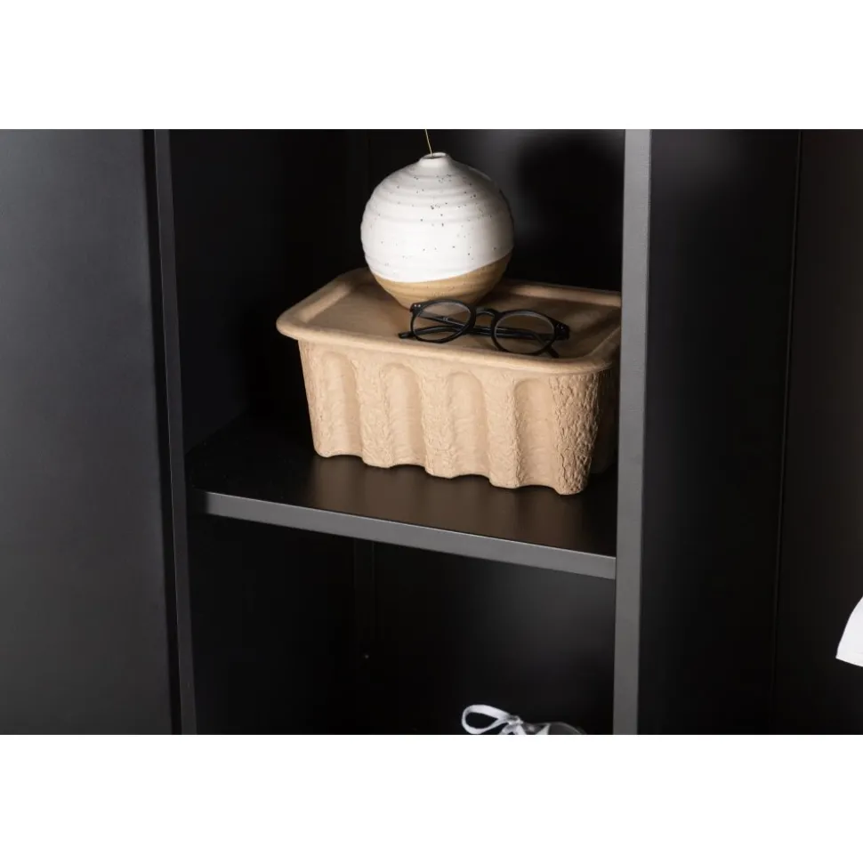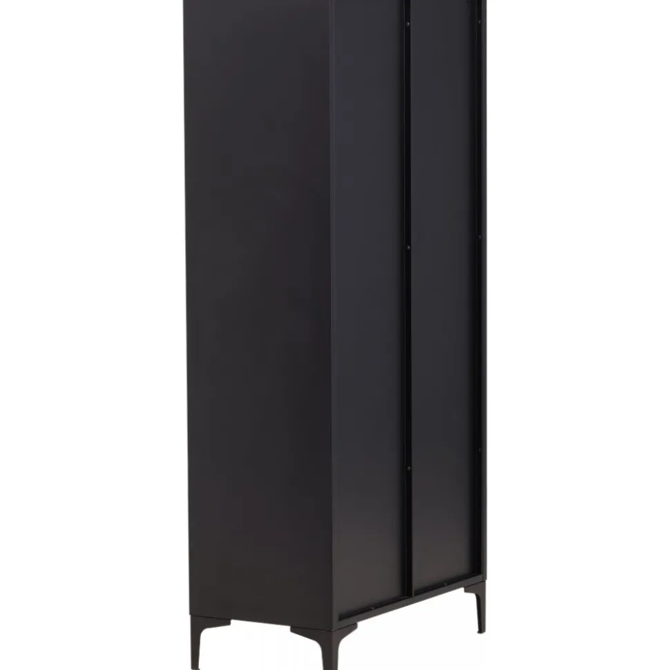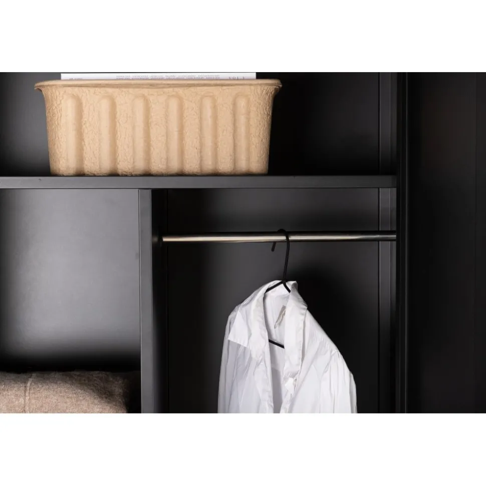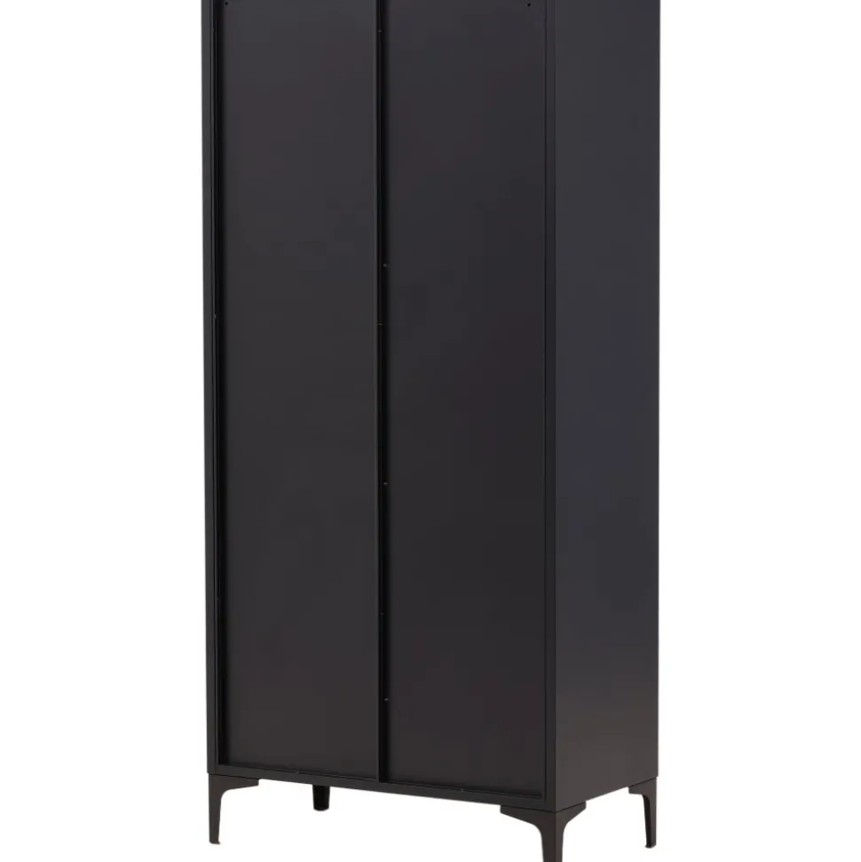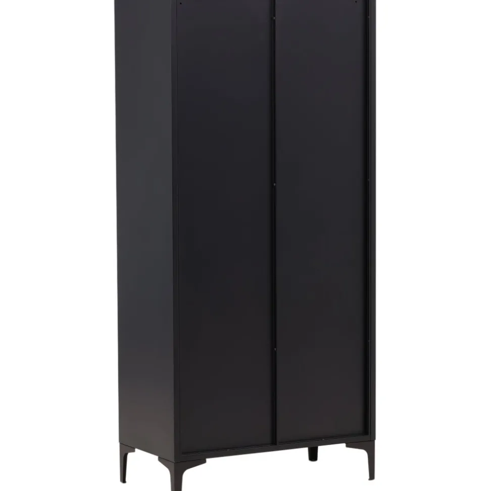 Kaxig och tidlös – Garderoben från serien Alexander är det perfekta tillskottet till sovrummet. Den här höga garderoben i svart stål har två dörrar som öppnar upp till fyra hyllplan och rymmer även plats för hängare så att de nystrukna kläderna slipper skrynklas. Alexander lyfts upp av fyra nätta ben som skapar ett luftigt intryck och underlättar också för dammsugaren. Investera i mer förvaringsyta till dig själv och få en snygg möbel i ditt hem på köpet.