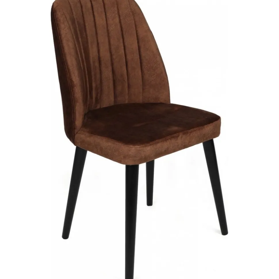 Matstol av metall med klädsel av sammet och ben av avenbok.