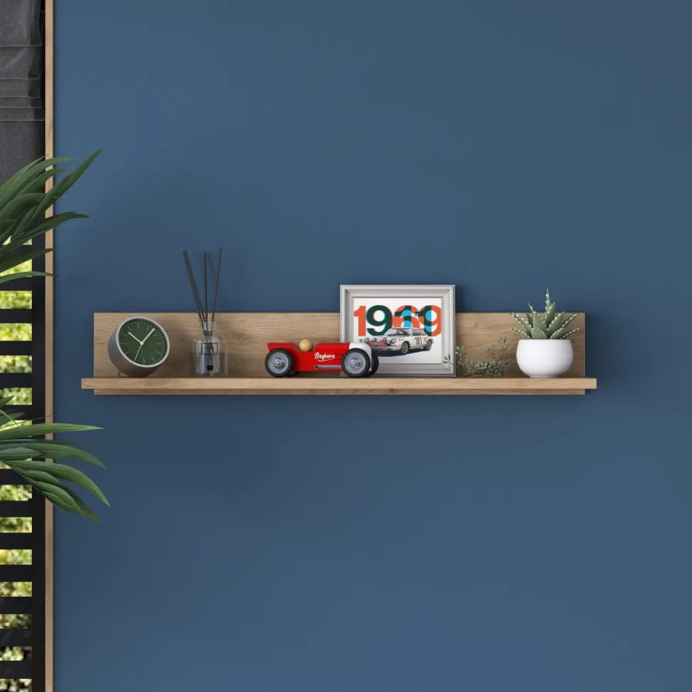 Vägghylla av spånskiva.