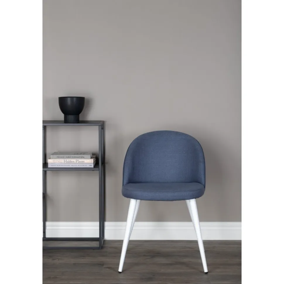 Matstol av metall och trä, klädd med polyestertyg.