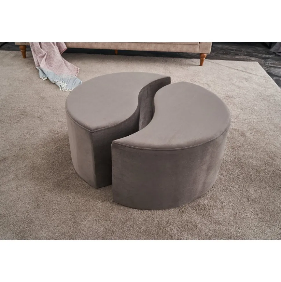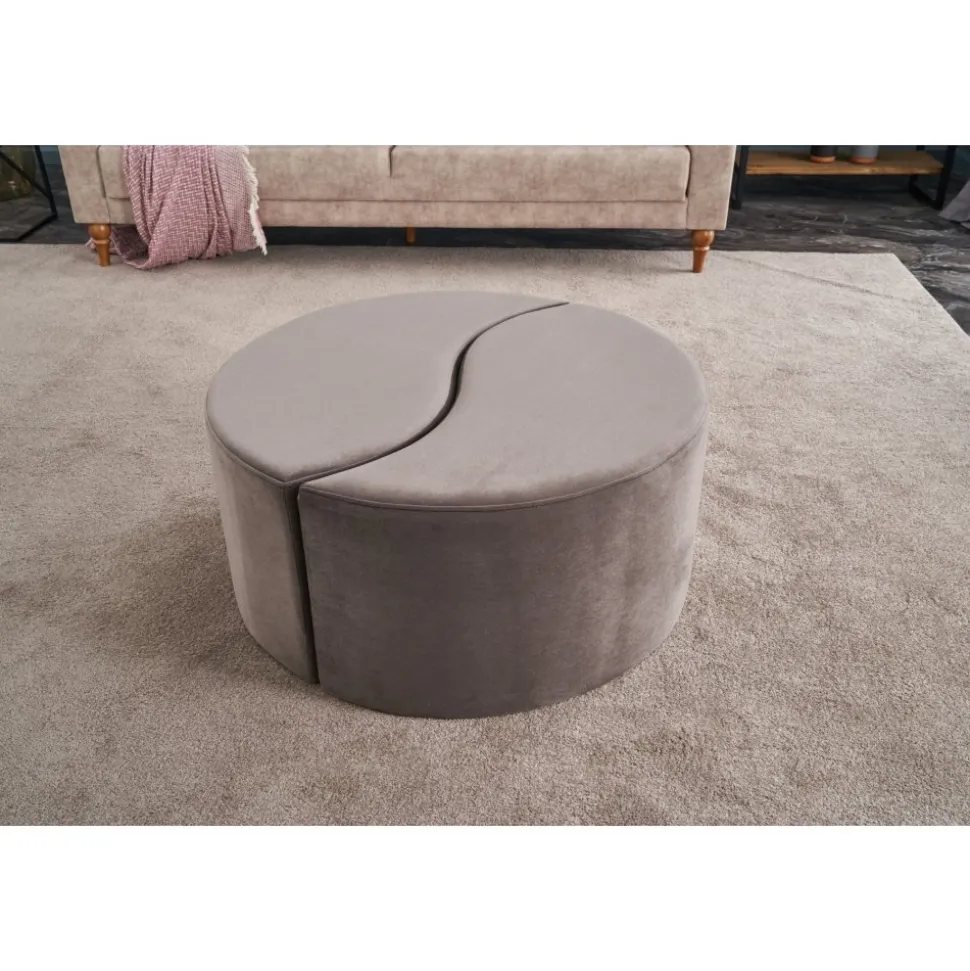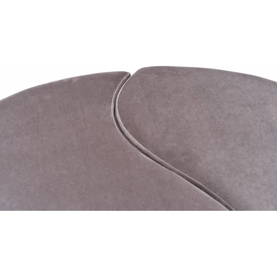 Sittpuff av trä. Klädsel av polyester och sammet.