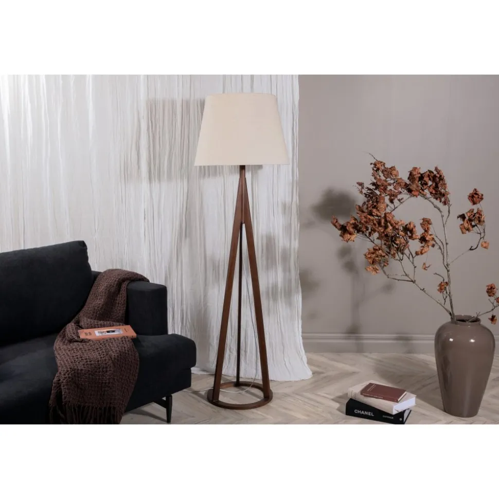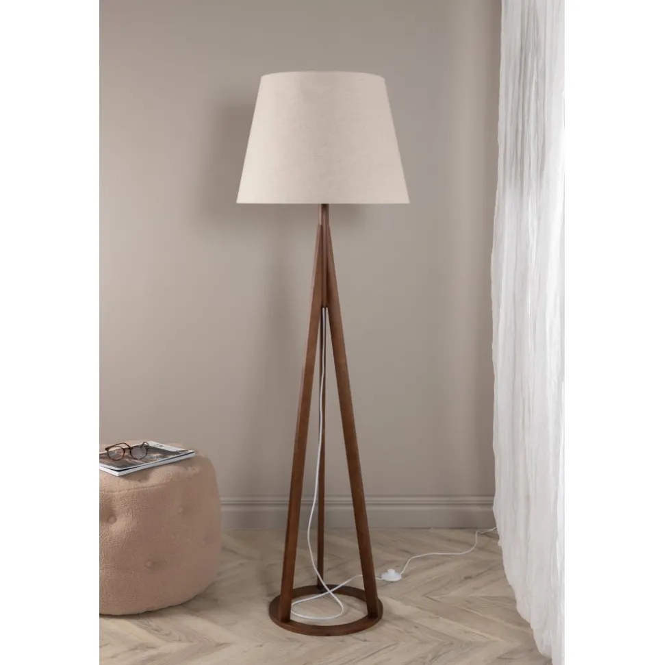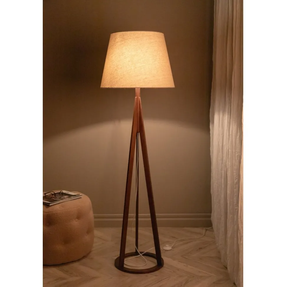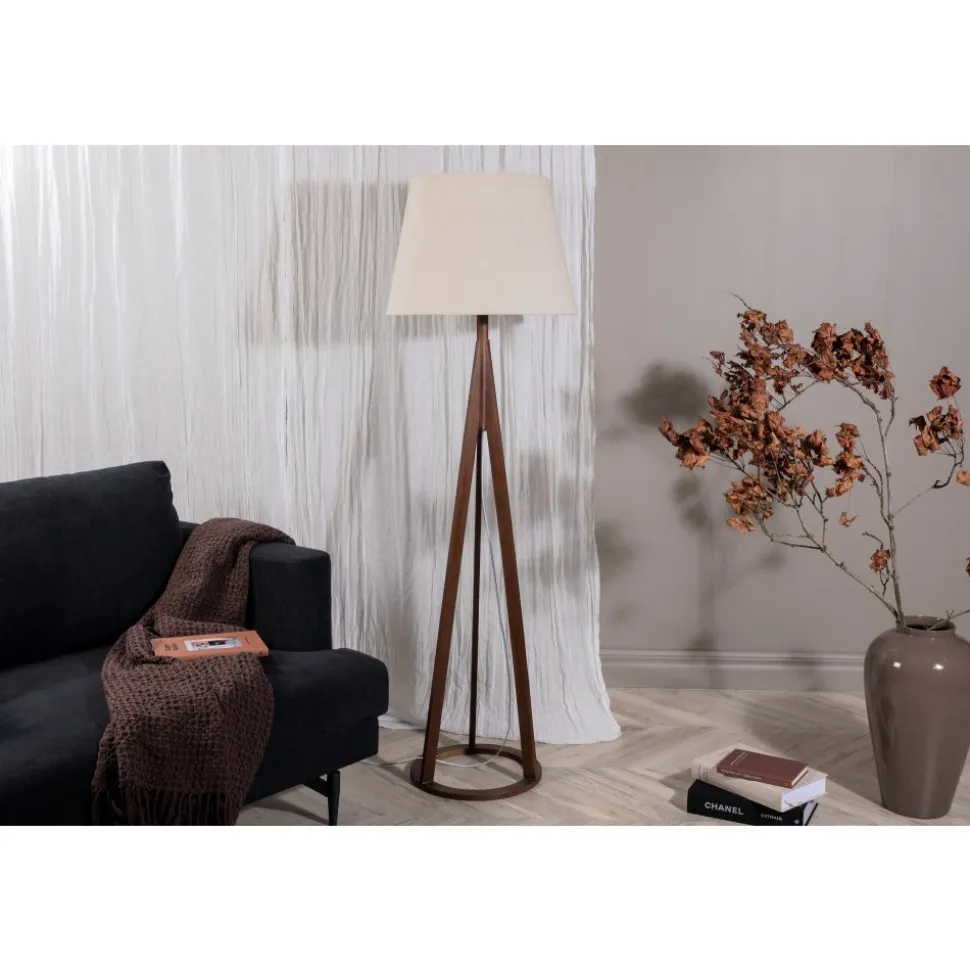 Golvlampa av pvc, gummiträ och linne.