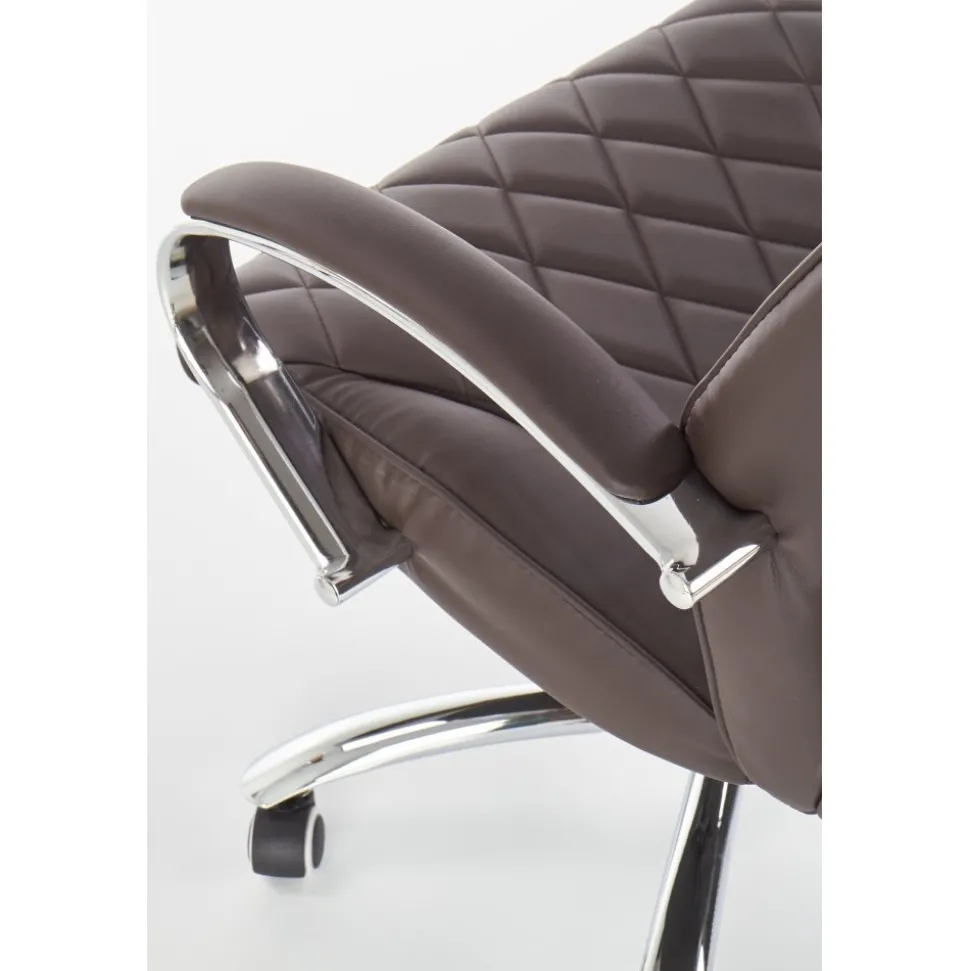 En härlig med en lyxig design. Kontorsstolen är tillverkad av metall och plast med en lyxig och mycket behaglig klädsel av konstläder för maximal komfort. Stolens höjd är lätt justerbar med hjälp av spaken under sitsen och stolen är även lätt att förflytta tack vare hjulen på stjärnfoten.