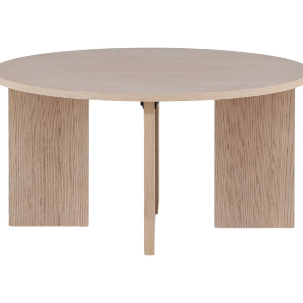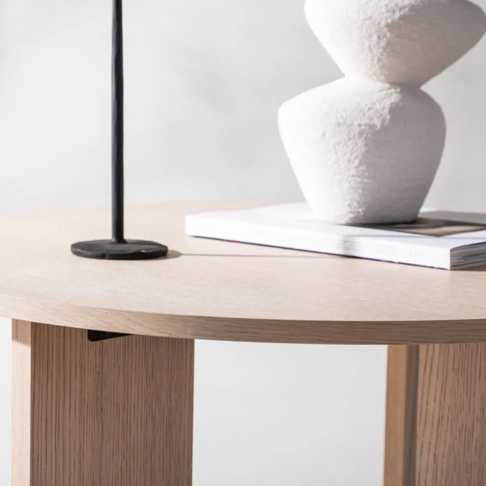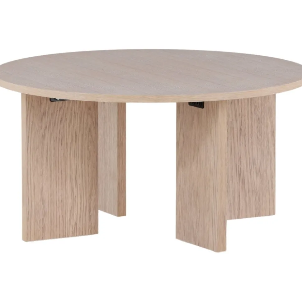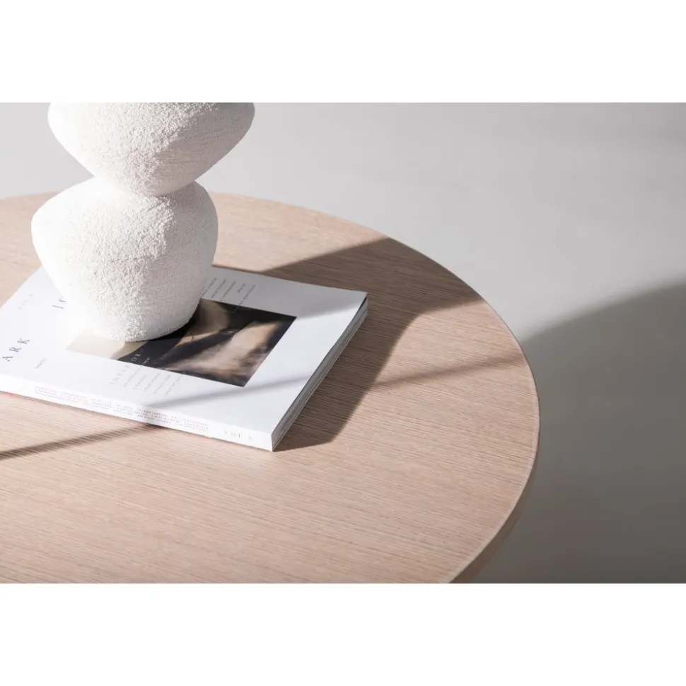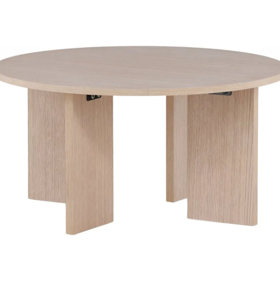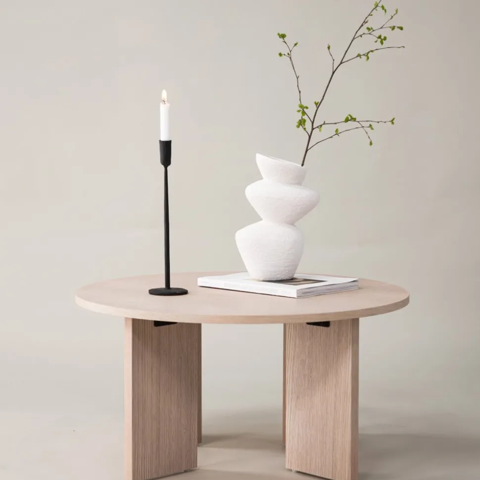 Soffbord som är helt i linje med trenderna! Toppskivan är rund i vitputsat trä och underredet dekorativt med fyra bärande plankor i samma material. Den genomtänkta helhetsdesignen imponerar och skapar ett trivsamt blickfång framför soffgruppen. Dekorera med en fin vas och några ljusstakar för en hemtrevlig känsla och följ våra skötselråd för bästa tips om hur du får bordet att stå sig över tid! Levereras omonterad.