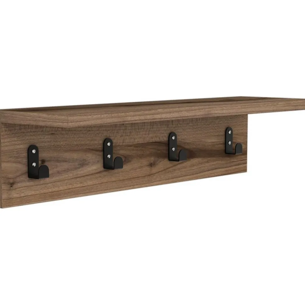 Vägghylla av melaminbelagd spånskiva.