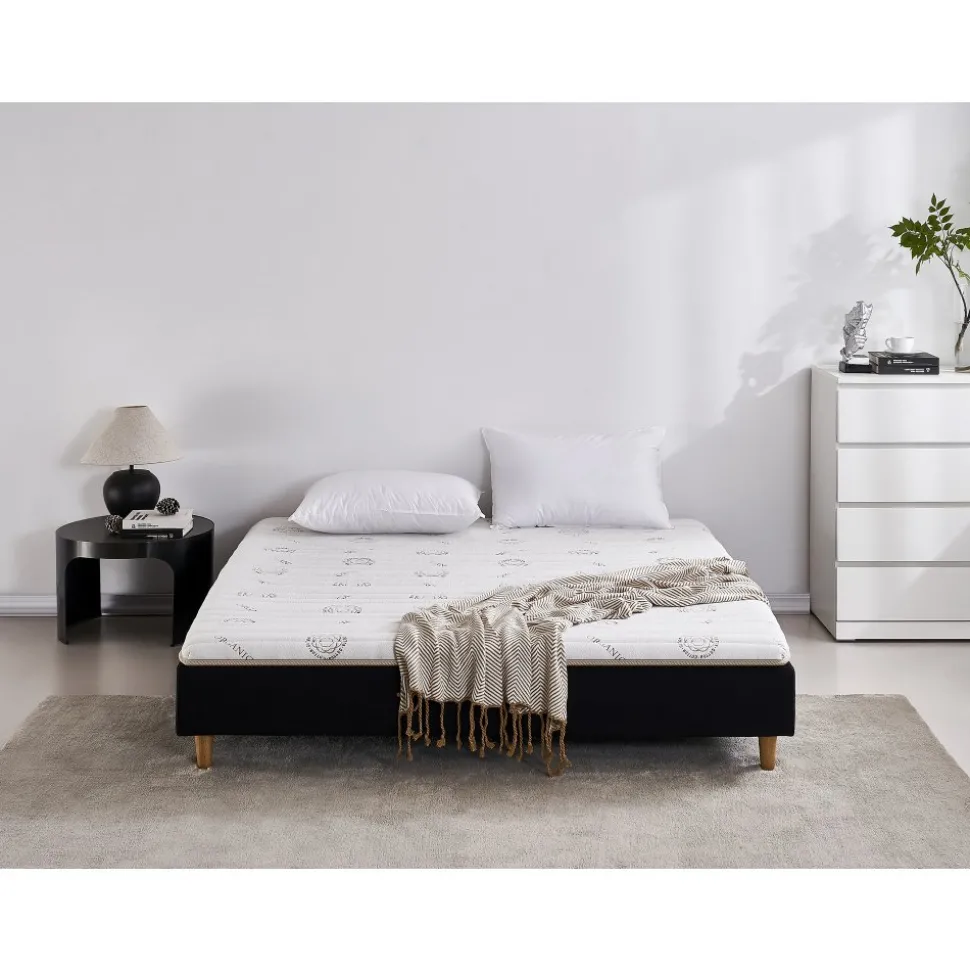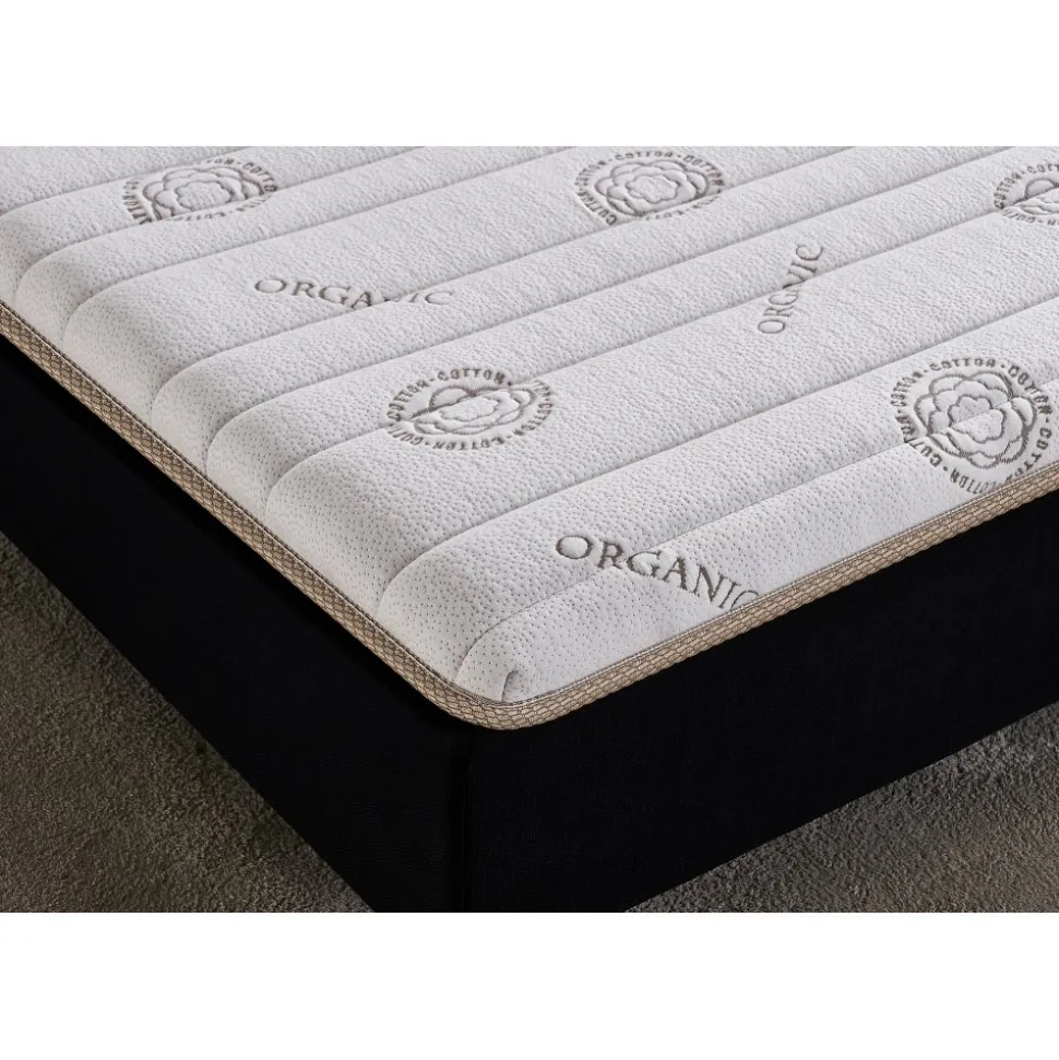 Bäddmadrass med naturlatex och ekologiskt odlad bomull. Undersidan av madrassen är klädd med ett tyg som hjälper till att hålla den på den plats du önskar.