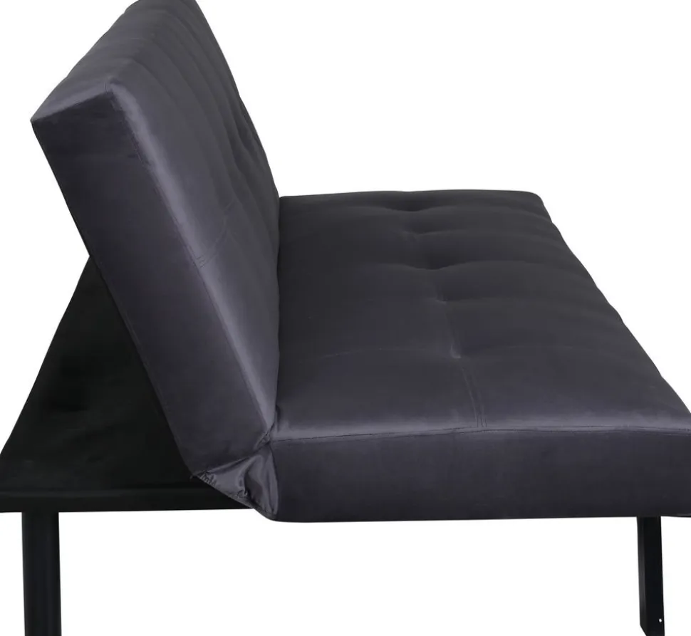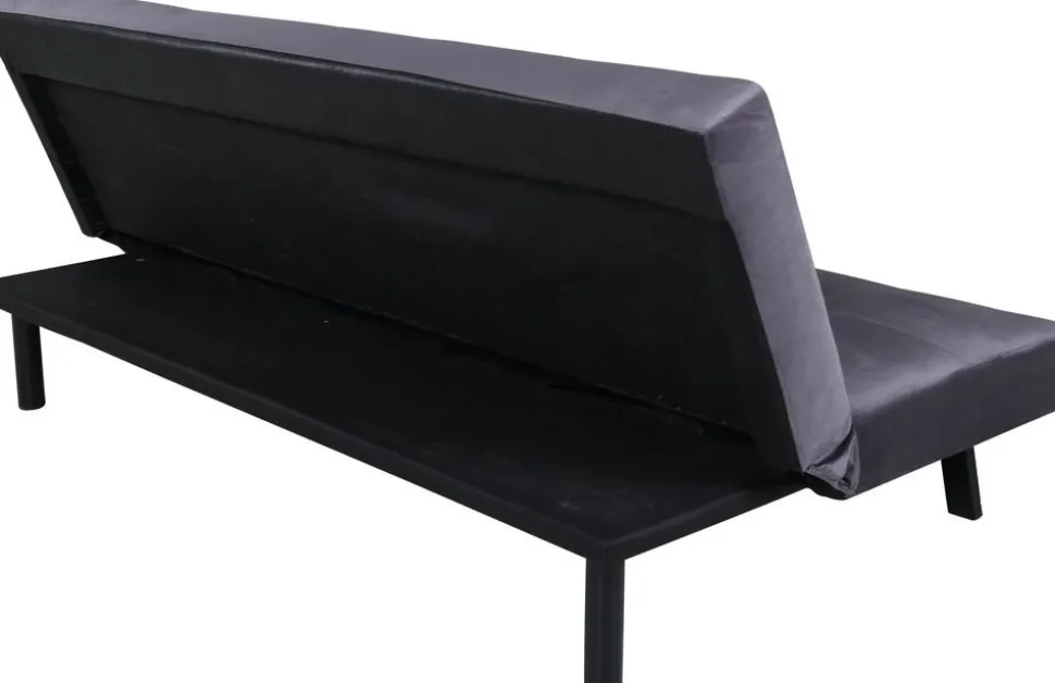 - Bäddsoffa i mörkgrå sammet