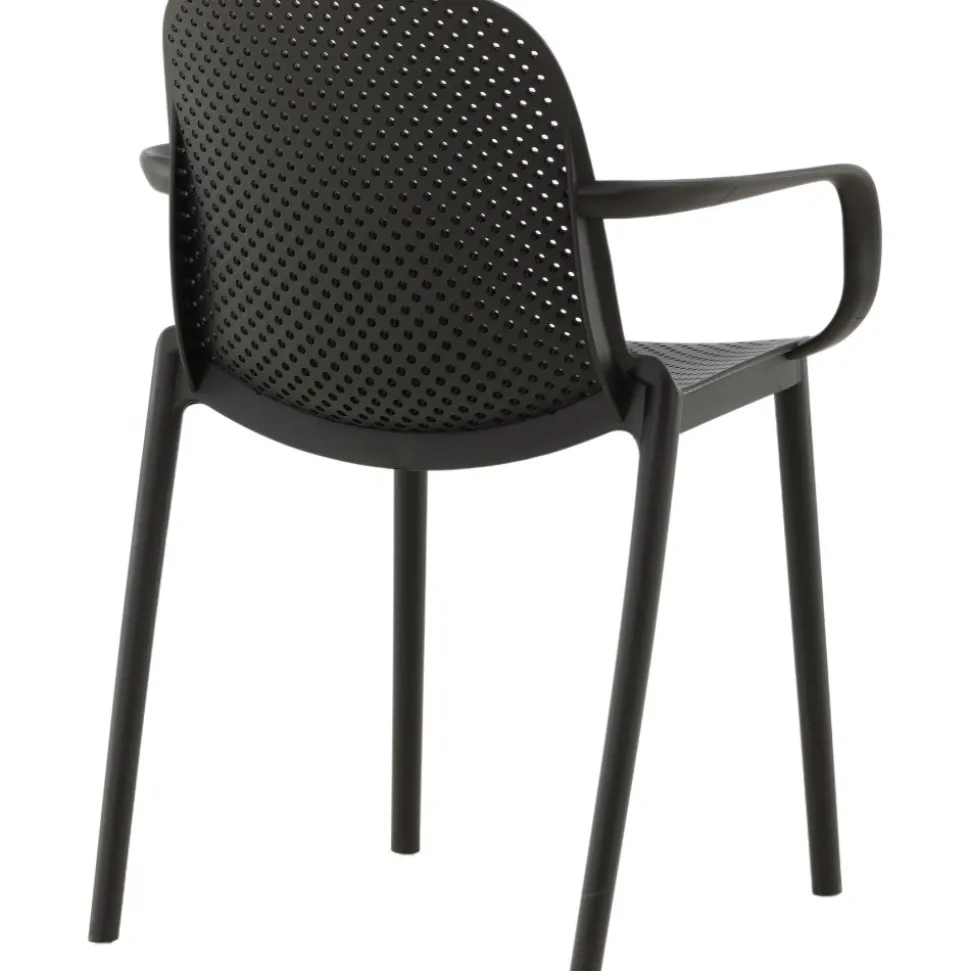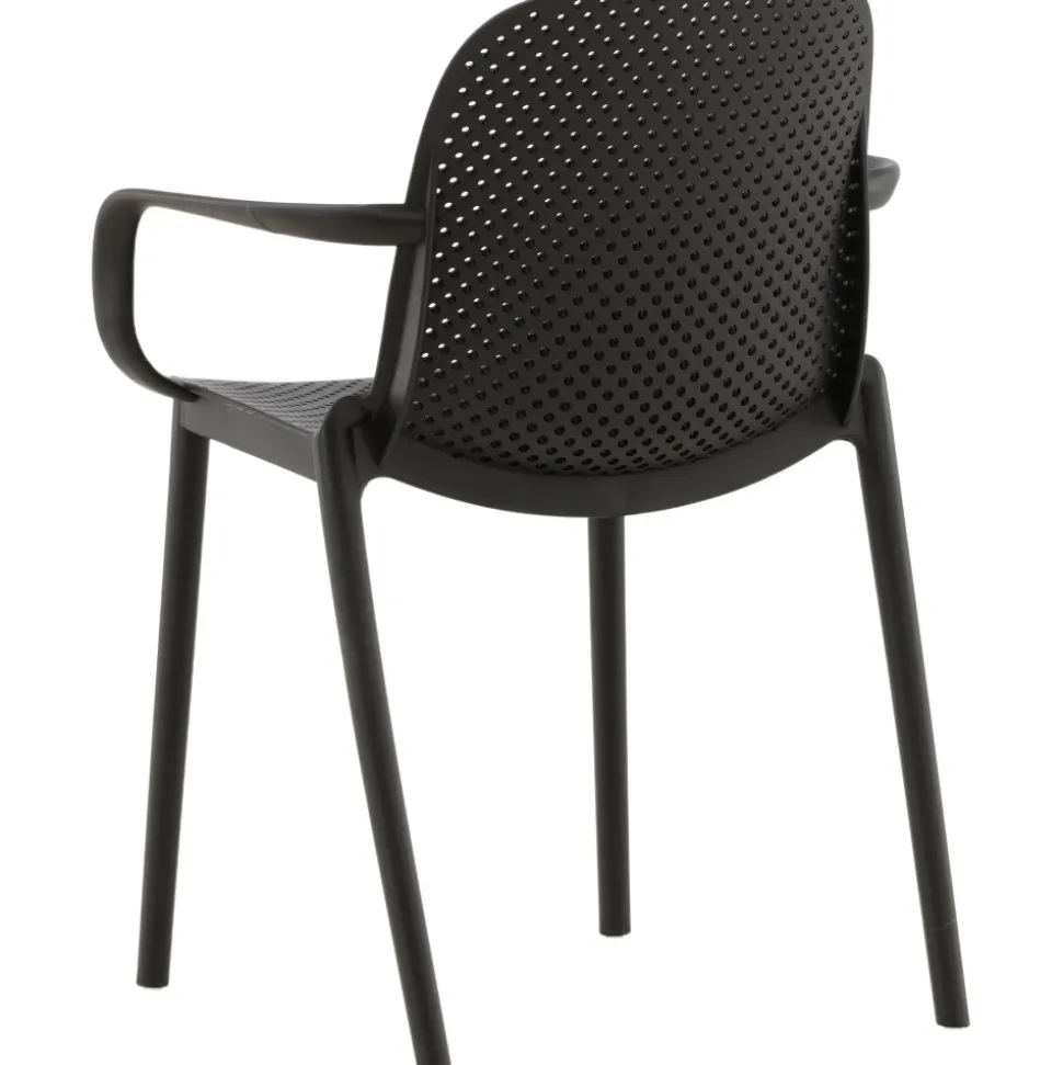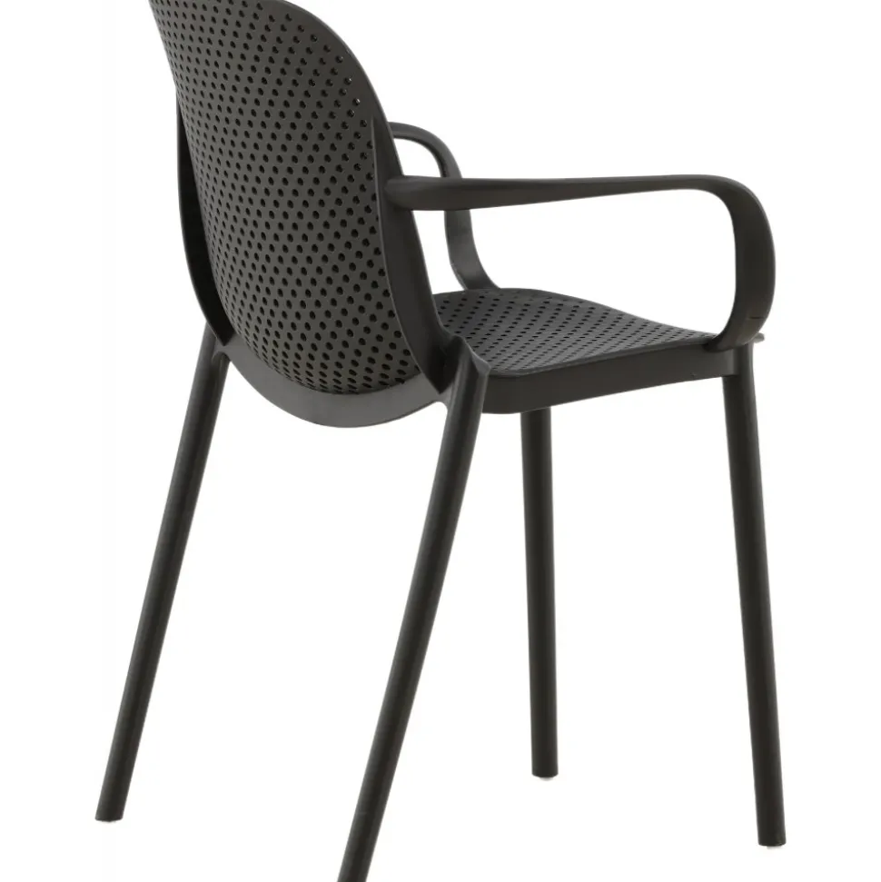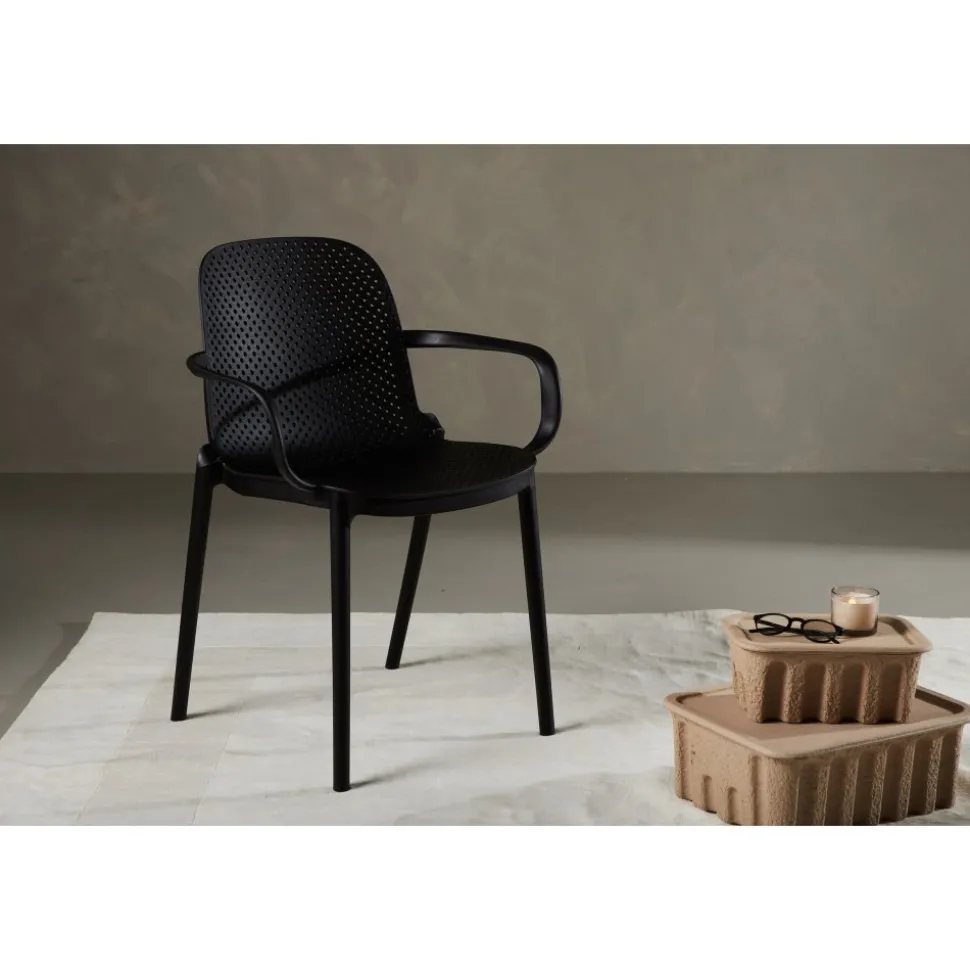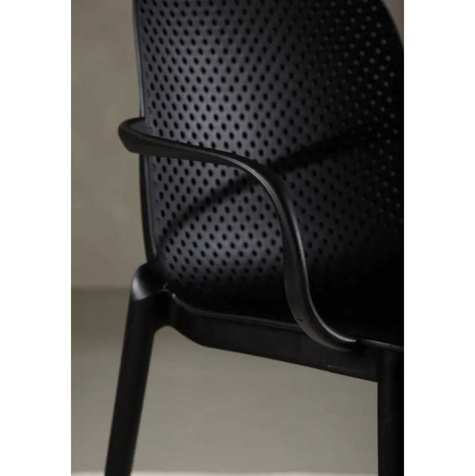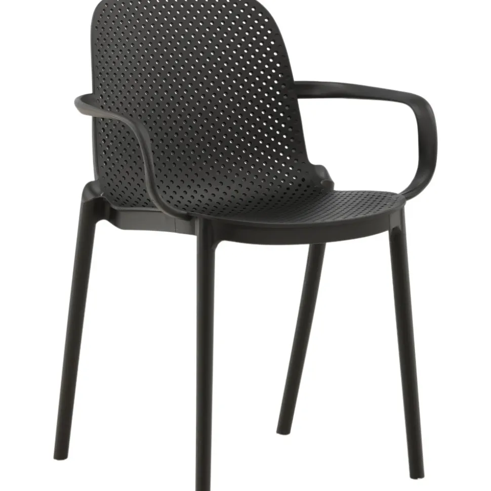 Smart med slitstarkt material och följsam design. Genomgående tillverkad i svart plast som är enkelt att sköta och ger dig en matstol som står sig över tid. Designen är iögonfallande med raka nordiska former och integrerade armstöd för extra komfort. Matcha kring ett läckert matbord så får du en komplett matgrupp för framtida måltider.