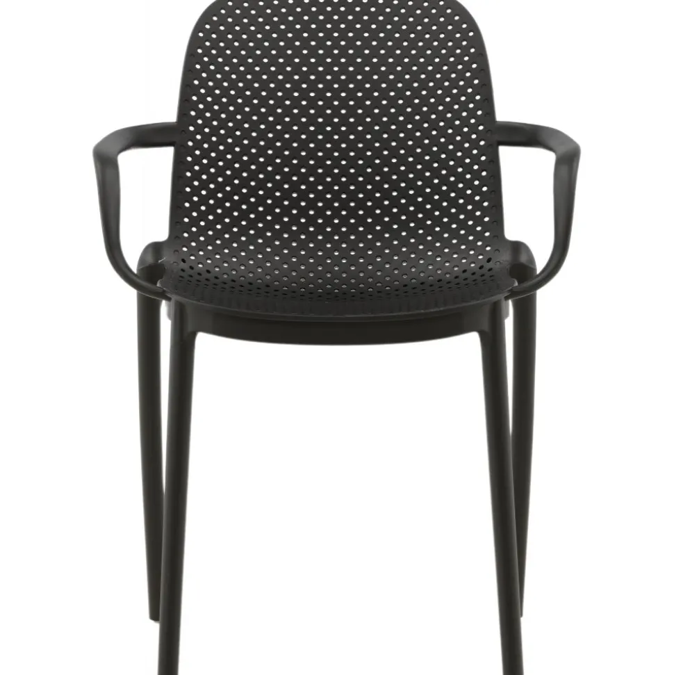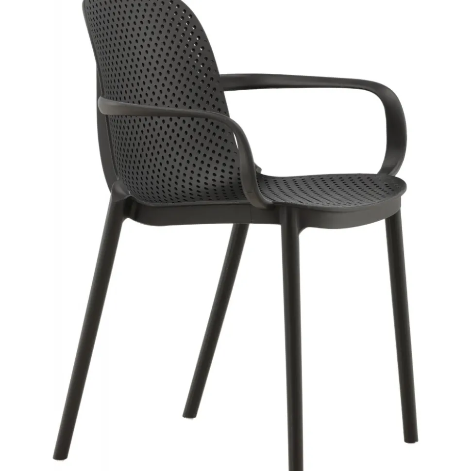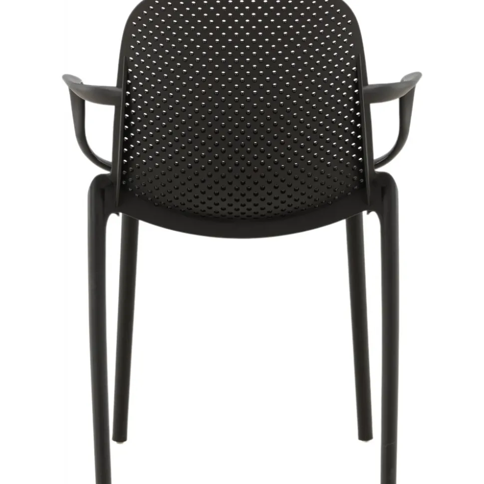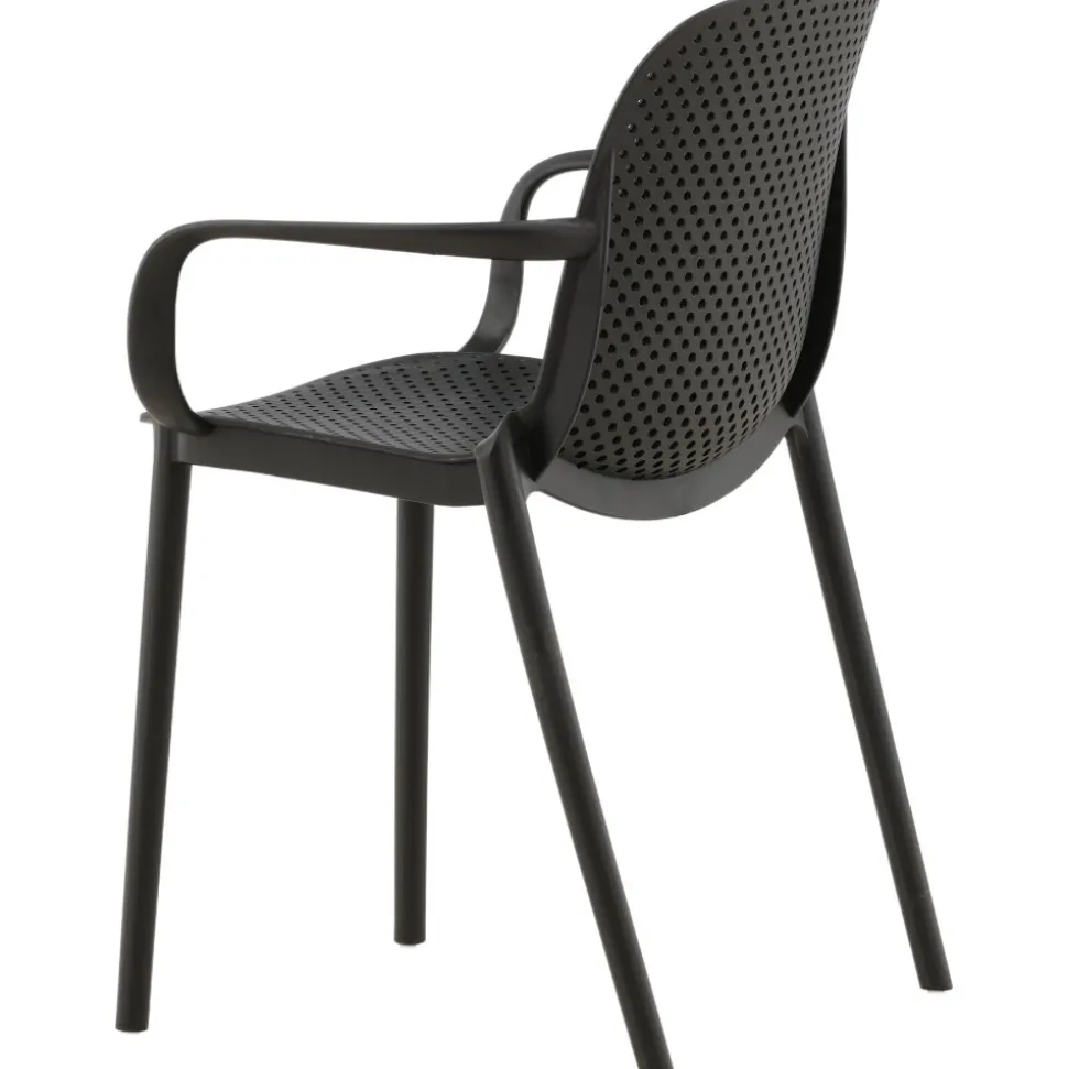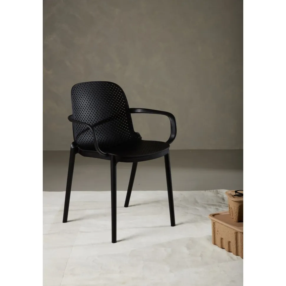 Smart med slitstarkt material och följsam design. Genomgående tillverkad i svart plast som är enkelt att sköta och ger dig en matstol som står sig över tid. Designen är iögonfallande med raka nordiska former och integrerade armstöd för extra komfort. Matcha kring ett läckert matbord så får du en komplett matgrupp för framtida måltider.