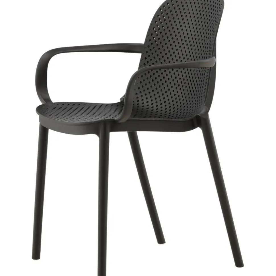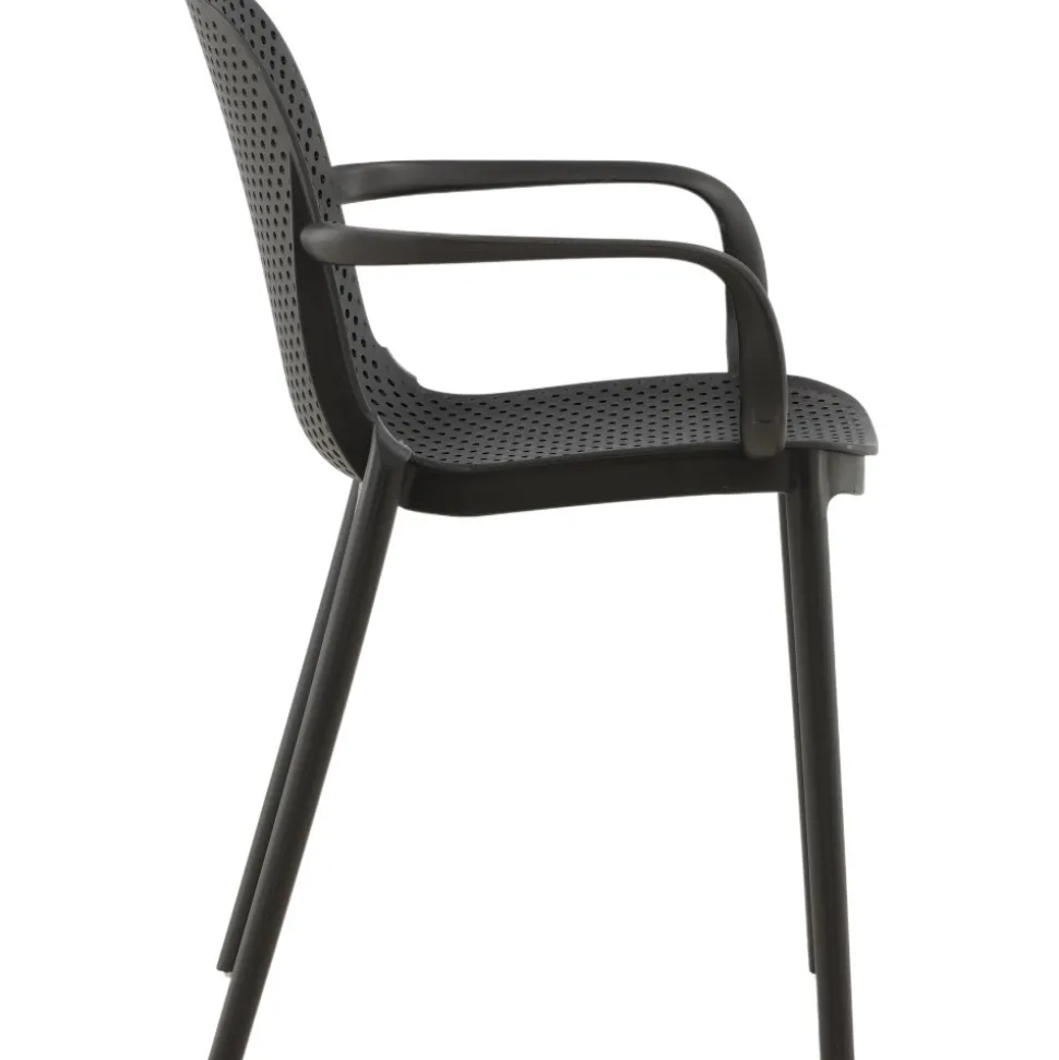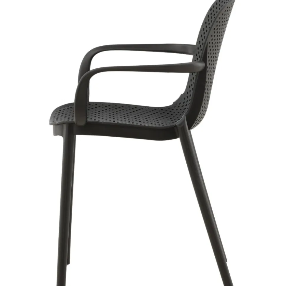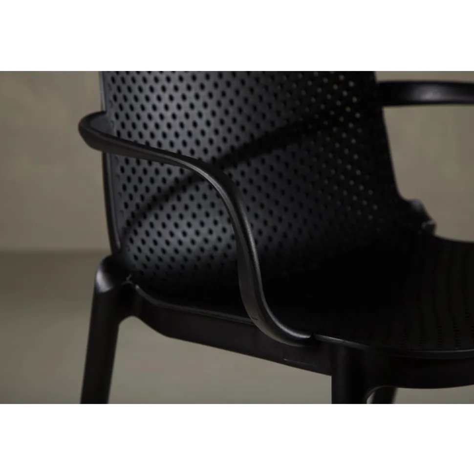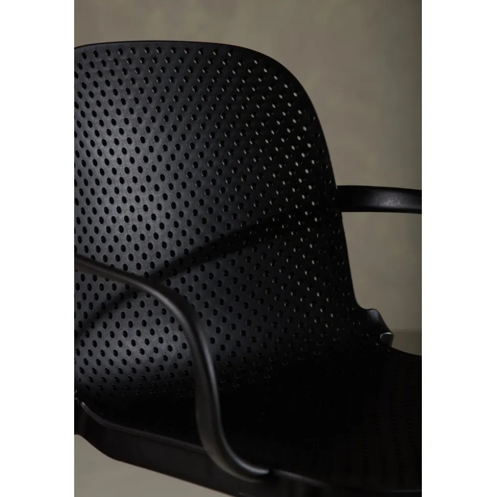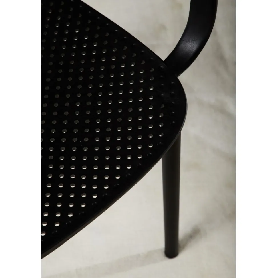 Smart med slitstarkt material och följsam design. Genomgående tillverkad i svart plast som är enkelt att sköta och ger dig en matstol som står sig över tid. Designen är iögonfallande med raka nordiska former och integrerade armstöd för extra komfort. Matcha kring ett läckert matbord så får du en komplett matgrupp för framtida måltider.