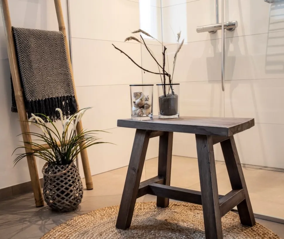 Sittbänk i teak trä.