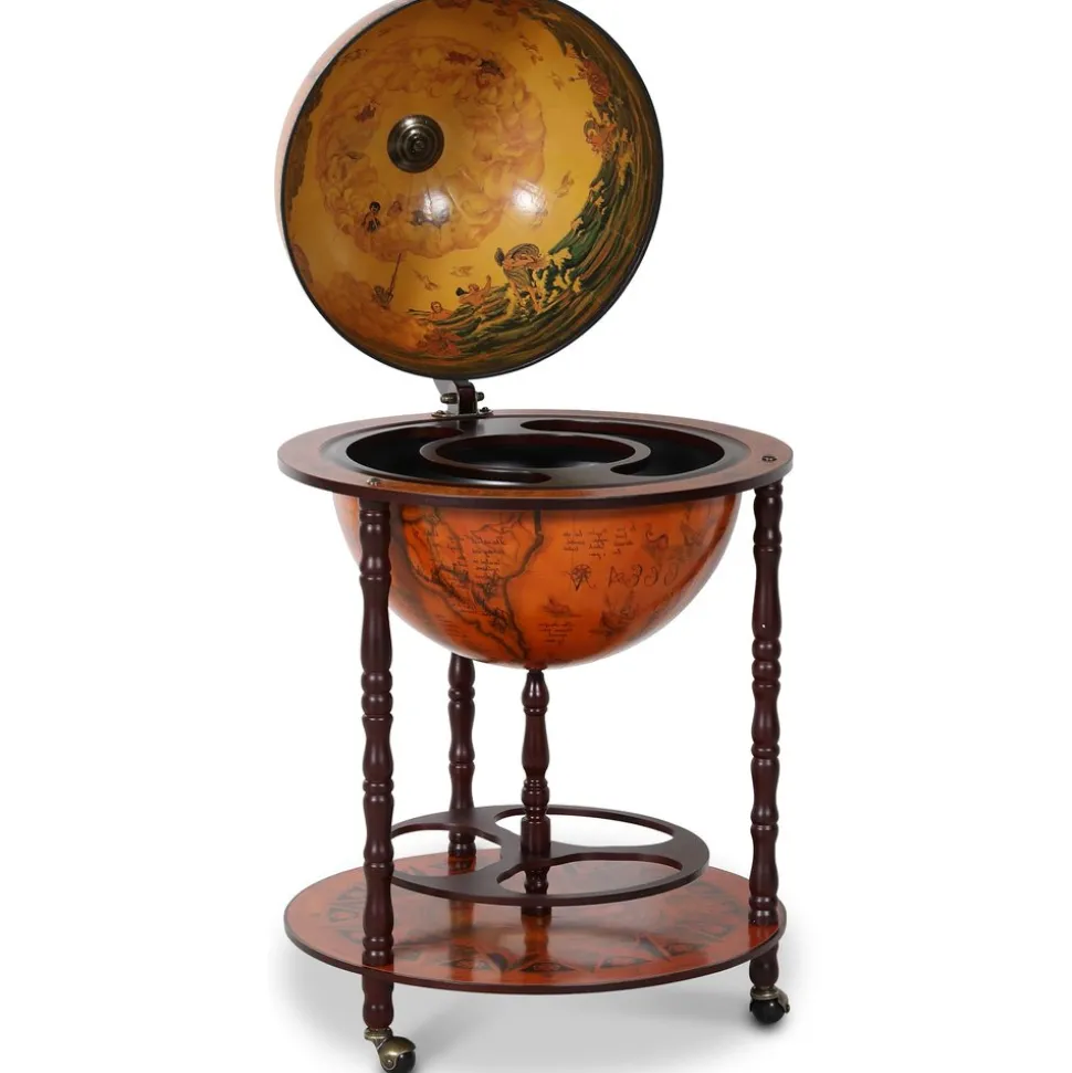 Klassiker inom inredningsvärlden. Barglob med förvaring för glas och flaskor, hjul för att kunna förflytta den lätt. 55 cm i diameter totalt. Höjd 93 cm.