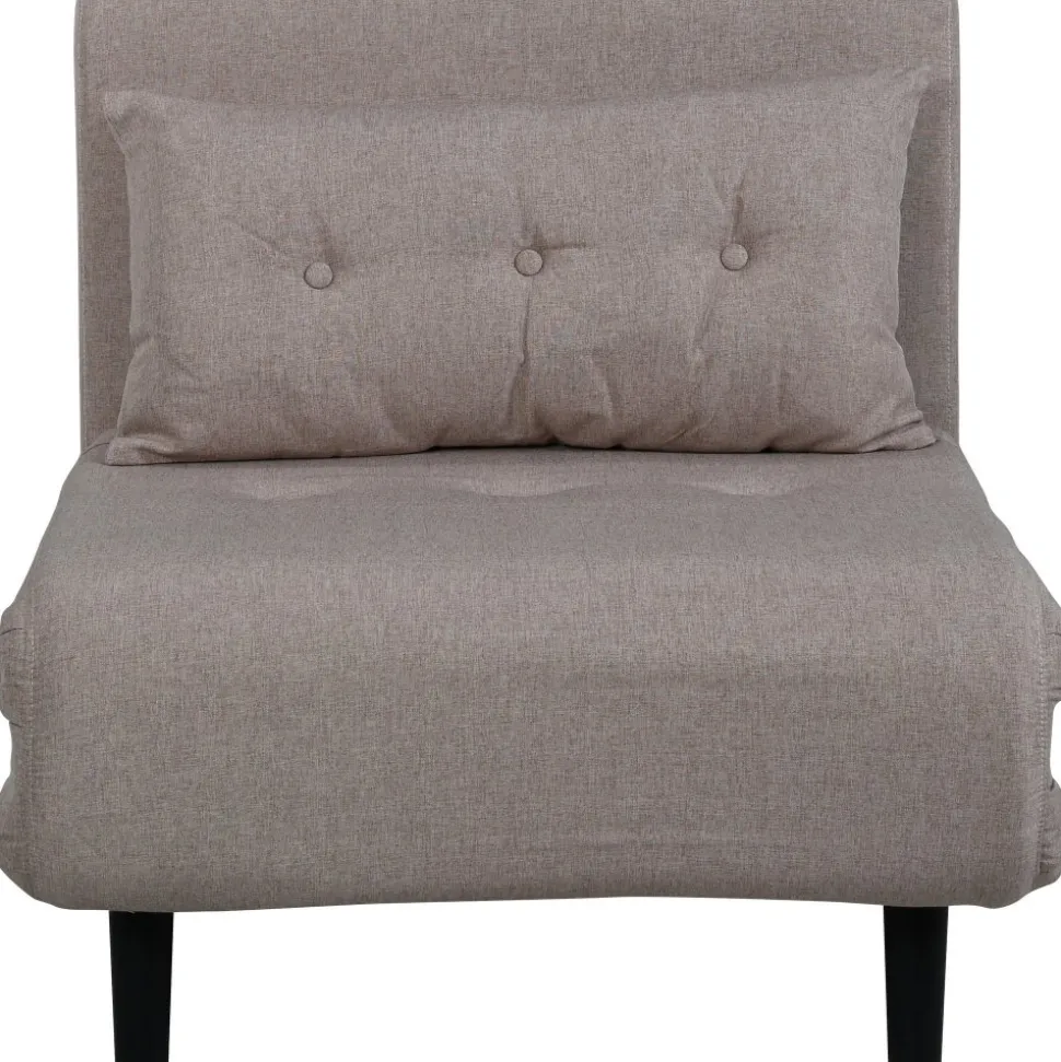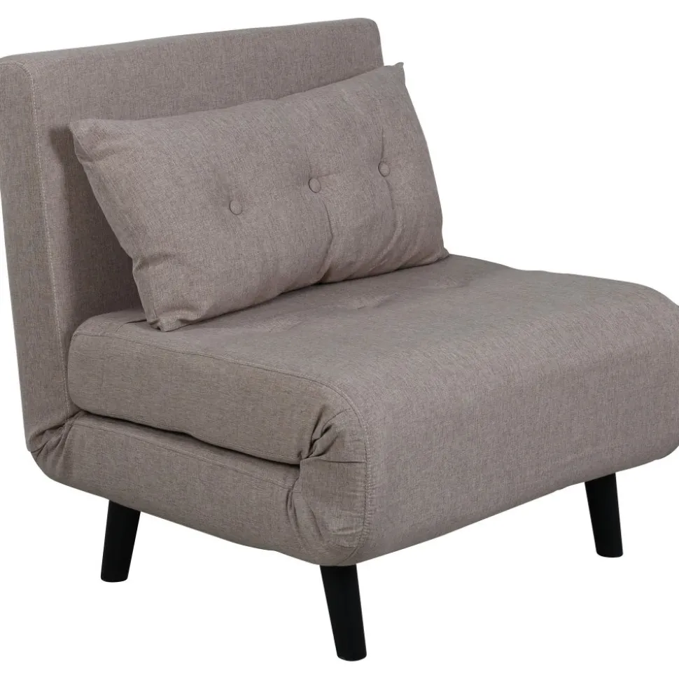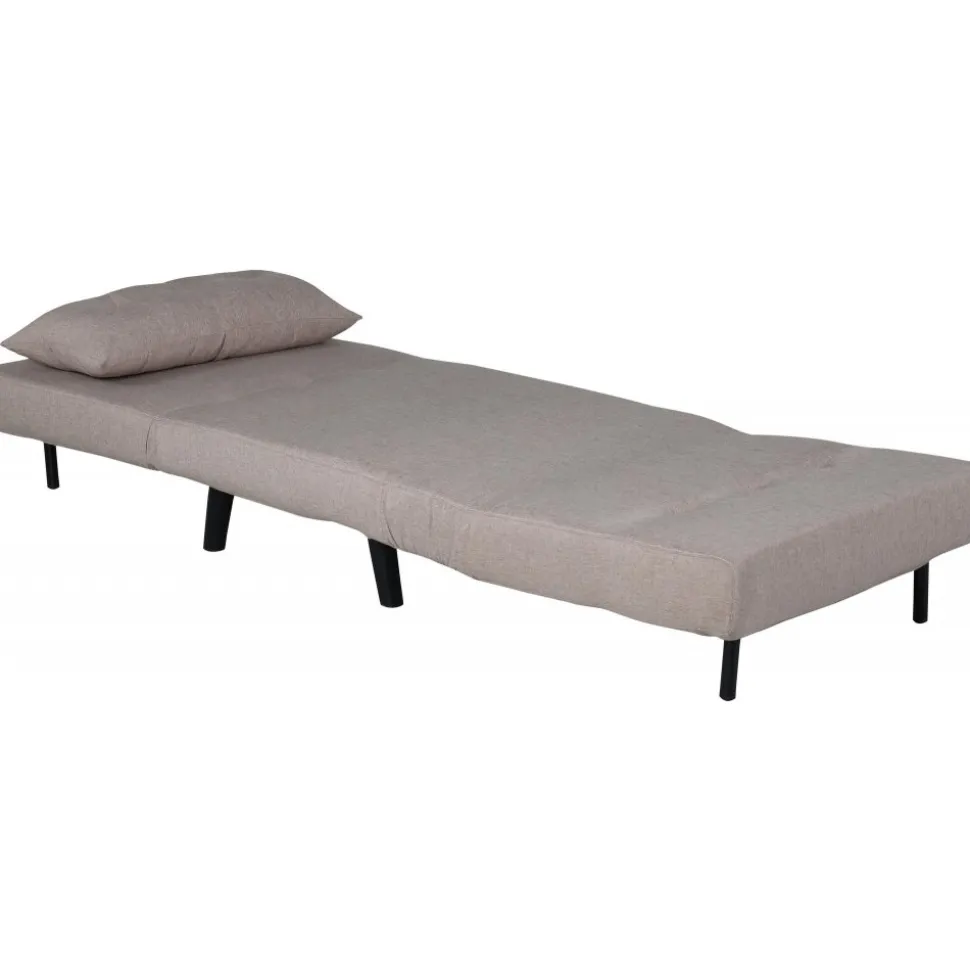 Bäddfåtölj av metall, klädd med polyestertyg.