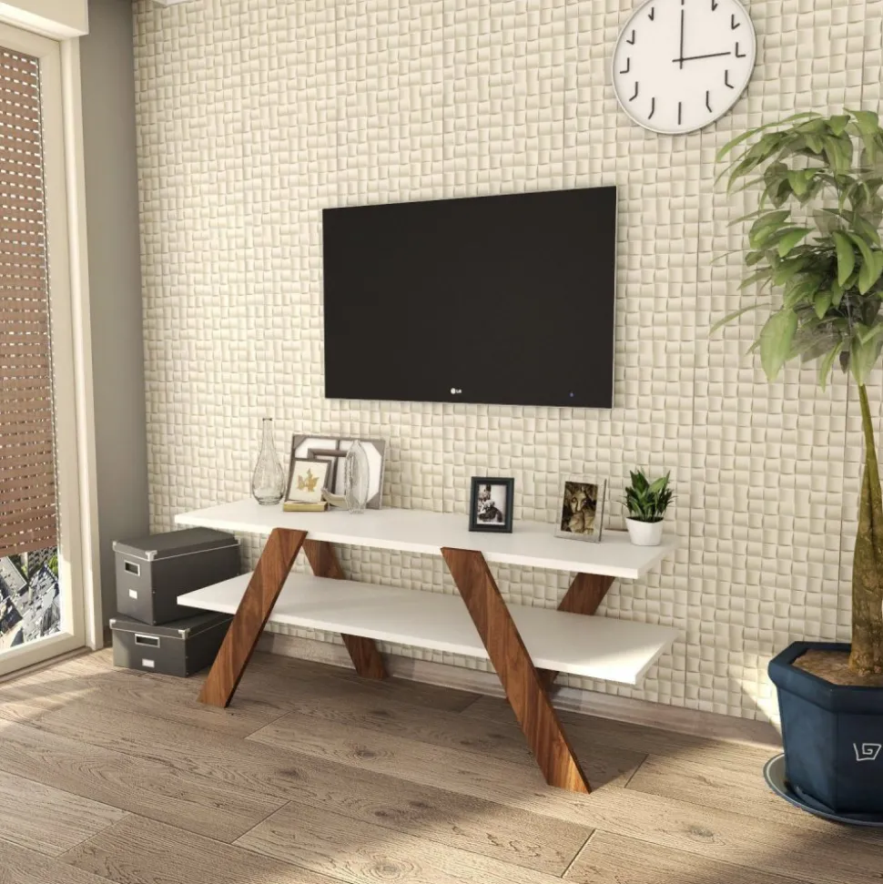 Mediabänk av melaminbelagd spånskiva.