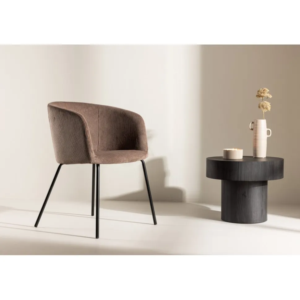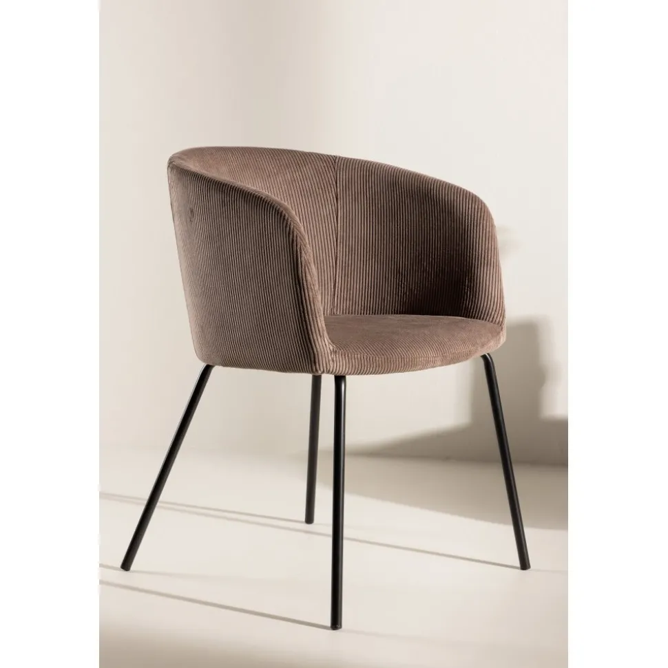 Möt Berit matstolen – det perfekta valet för en modern och stilren matsalsinredning. Berit är den ultimata kombinationen av stil och komfort för ditt hem. Med sin eleganta bruna färg och det mjuka materialet av polyester corduroy, erbjuder Berit en lyxig och bekväm sittupplevelse vid middagsbordet. Dess enkla och moderna design kompletteras av benen i svart stål, vilket ger en stadig och elegant bas för stolen. Berit matstolen är inte bara snygg utan också funktionell och mångsidig. Dess djupa sits gör det bekvämt att sitta under långa måltider eller samtal vid bordet, vilket gör den till en perfekt följeslagare för både vardagliga och speciella tillfällen. Ge din matsal det perfekta lyftet med Berit matstolen – enkel, modern och bekväm för alla dina middagar och sammankomster.