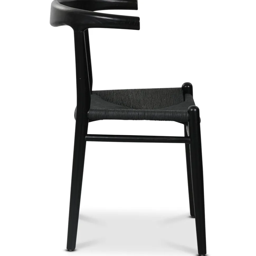 Klassisk i karm-modell i svartmålat massivt almträ med sits av flätat papperssnöre. Levereras monterad.