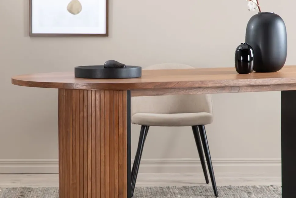 Matbord med en modern design. Tillverkat i solid trä och MDF, med vacker valnöt fanér. ett designat av hög kvalitet.
