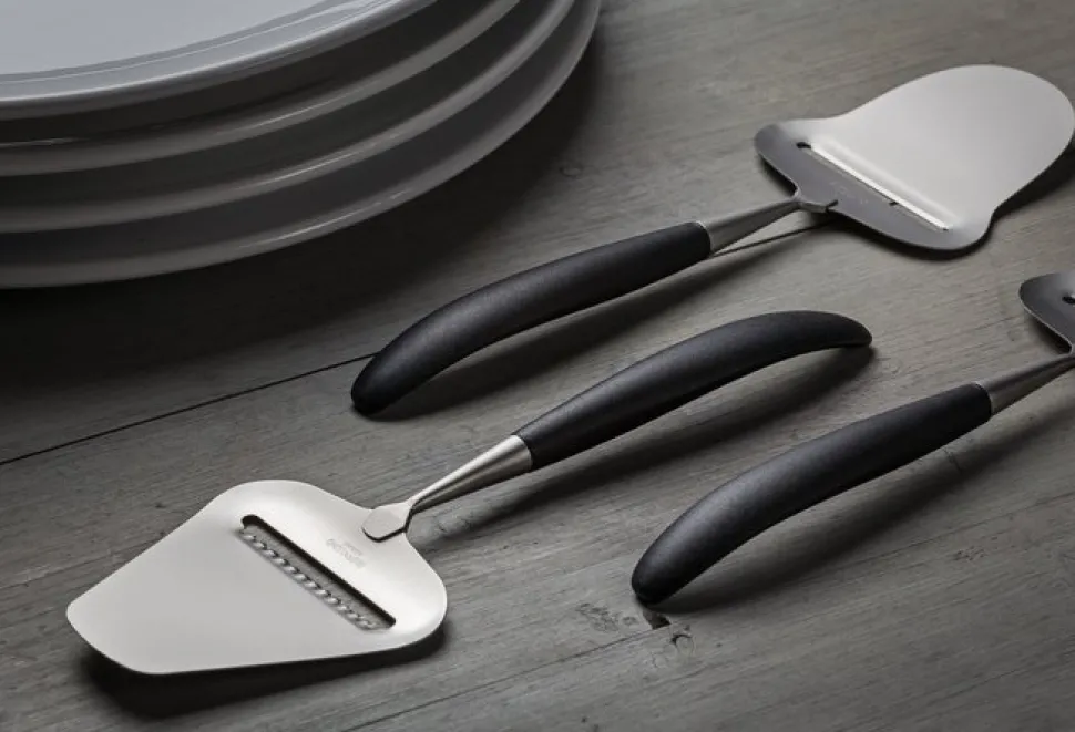 Osthyvel av borstad 18/8 stål och svart handtag i nylon.