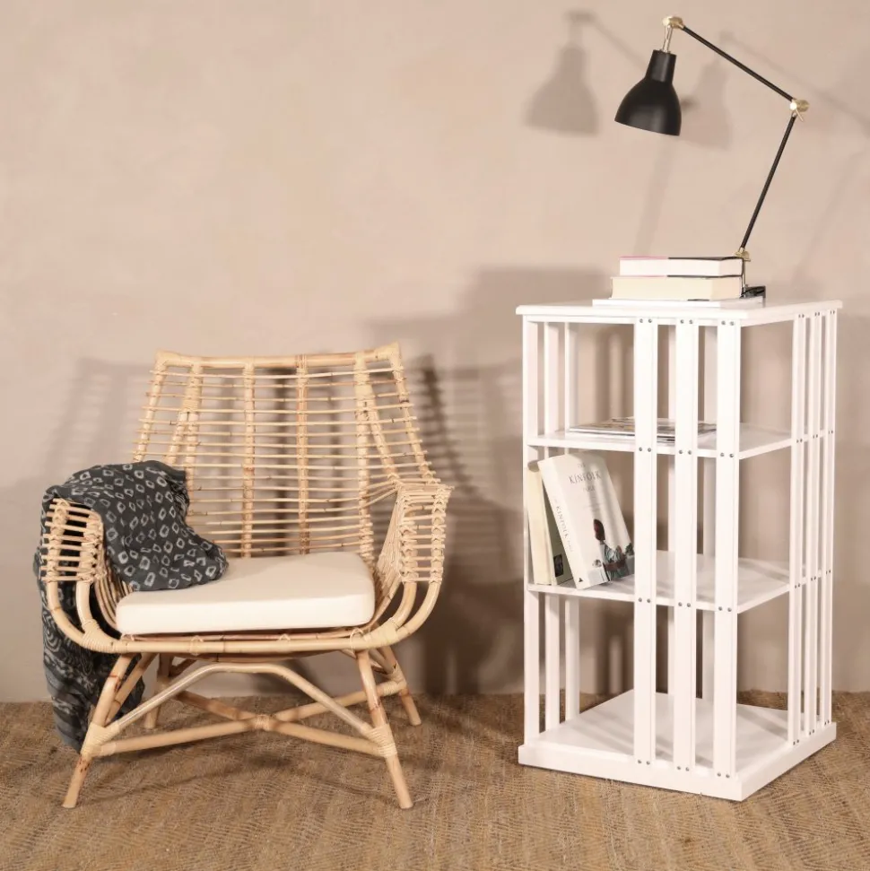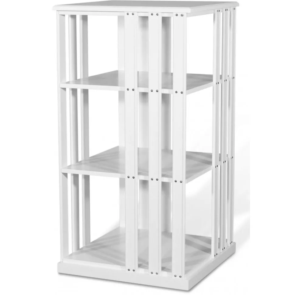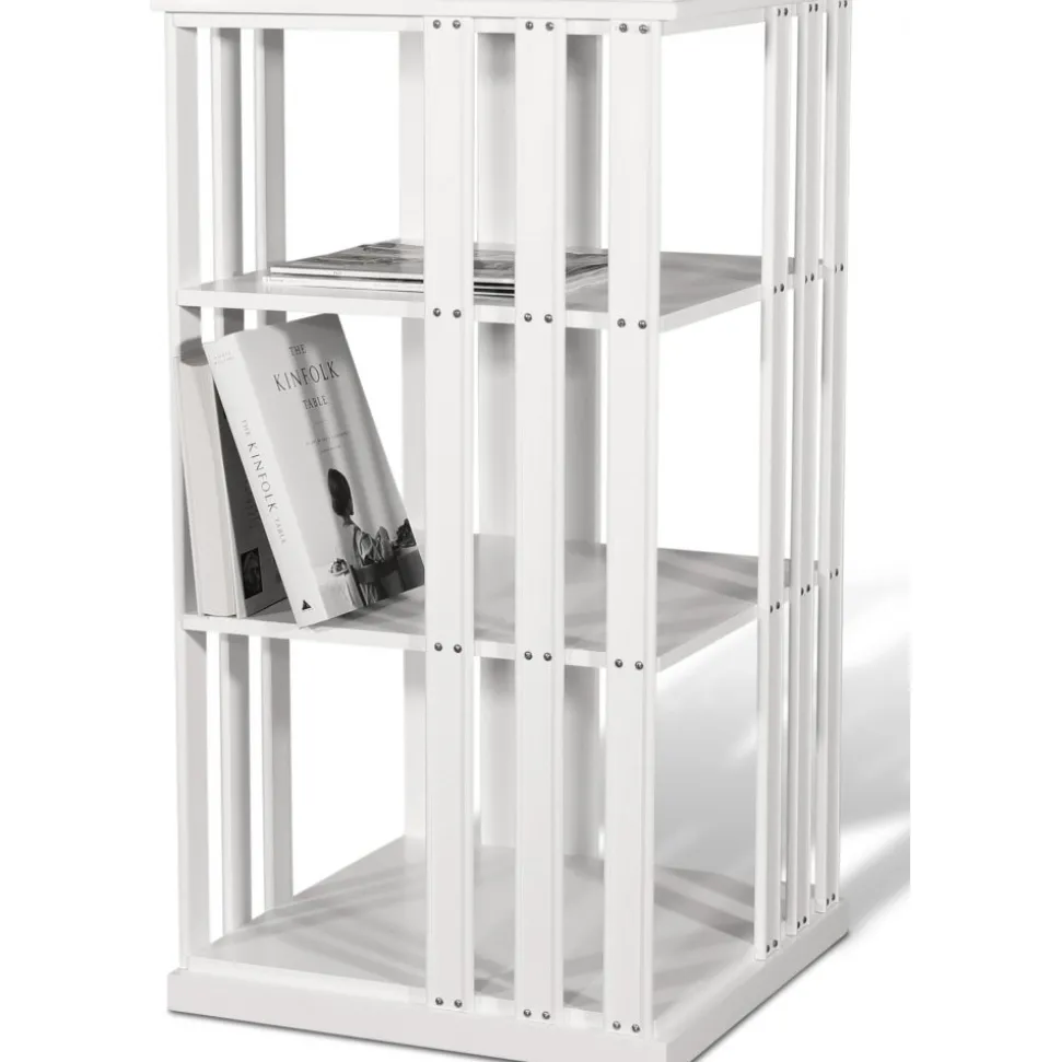 En klassisk och tidlös karusellhylla eller ”boksnurra” som den också kallas för. Bokhyllan har 3 hyllplan för praktisk förvaring och hela hyllan är tillverkad av av trä i vitlackad finish.