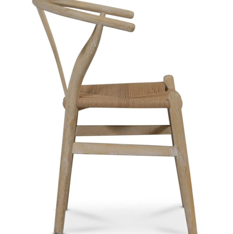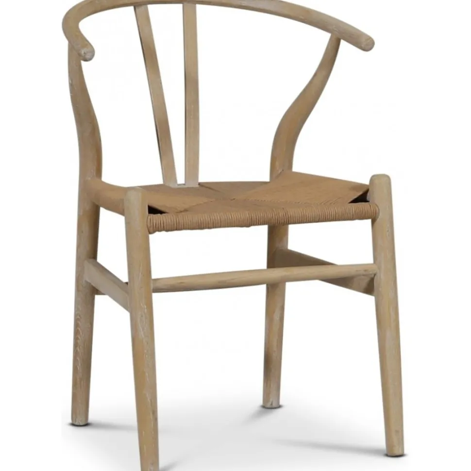 Denna klassiska karmstol är konstruerad av whitewash-behandlat almträ, vilket ger en hållbar och stabil stomme med en ljus finish. Den flätade sitsen av papperssnöre erbjuder både komfort och en unik estetik. Stolen är designad för att passa i olika miljöer och kompletterar både moderna och mer traditionella inredningsstilar.