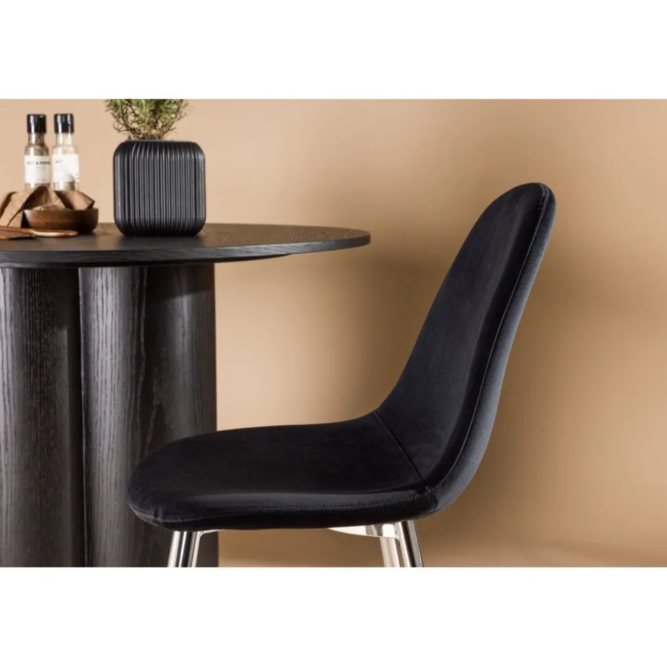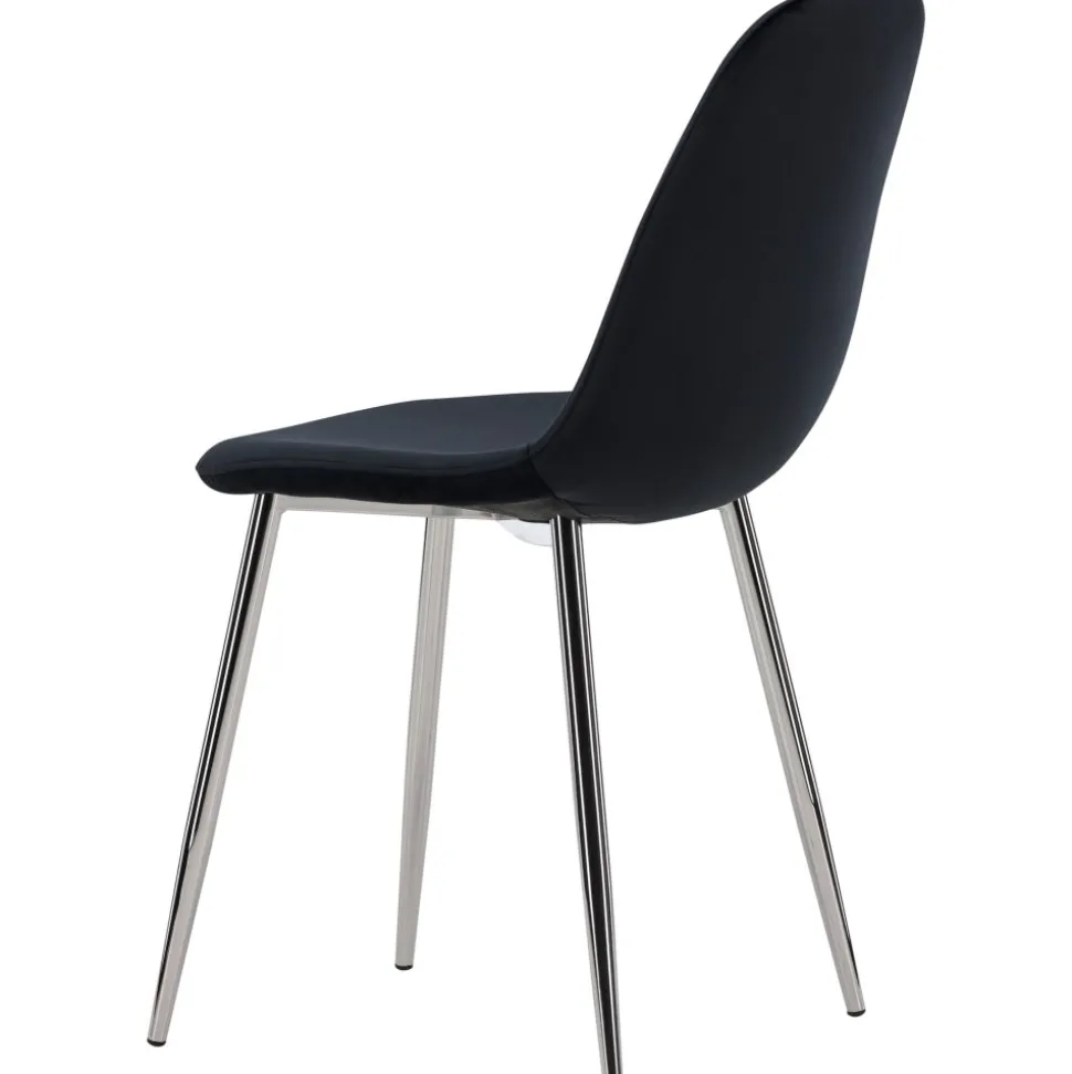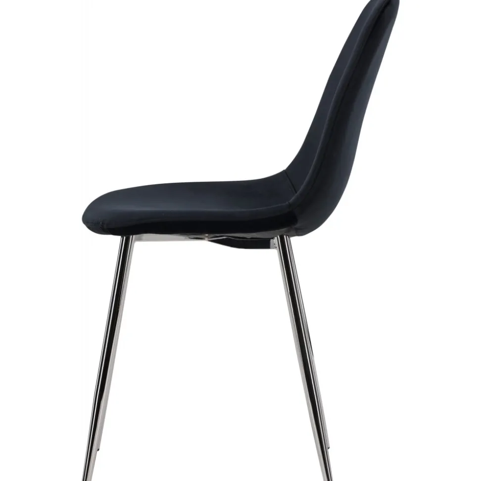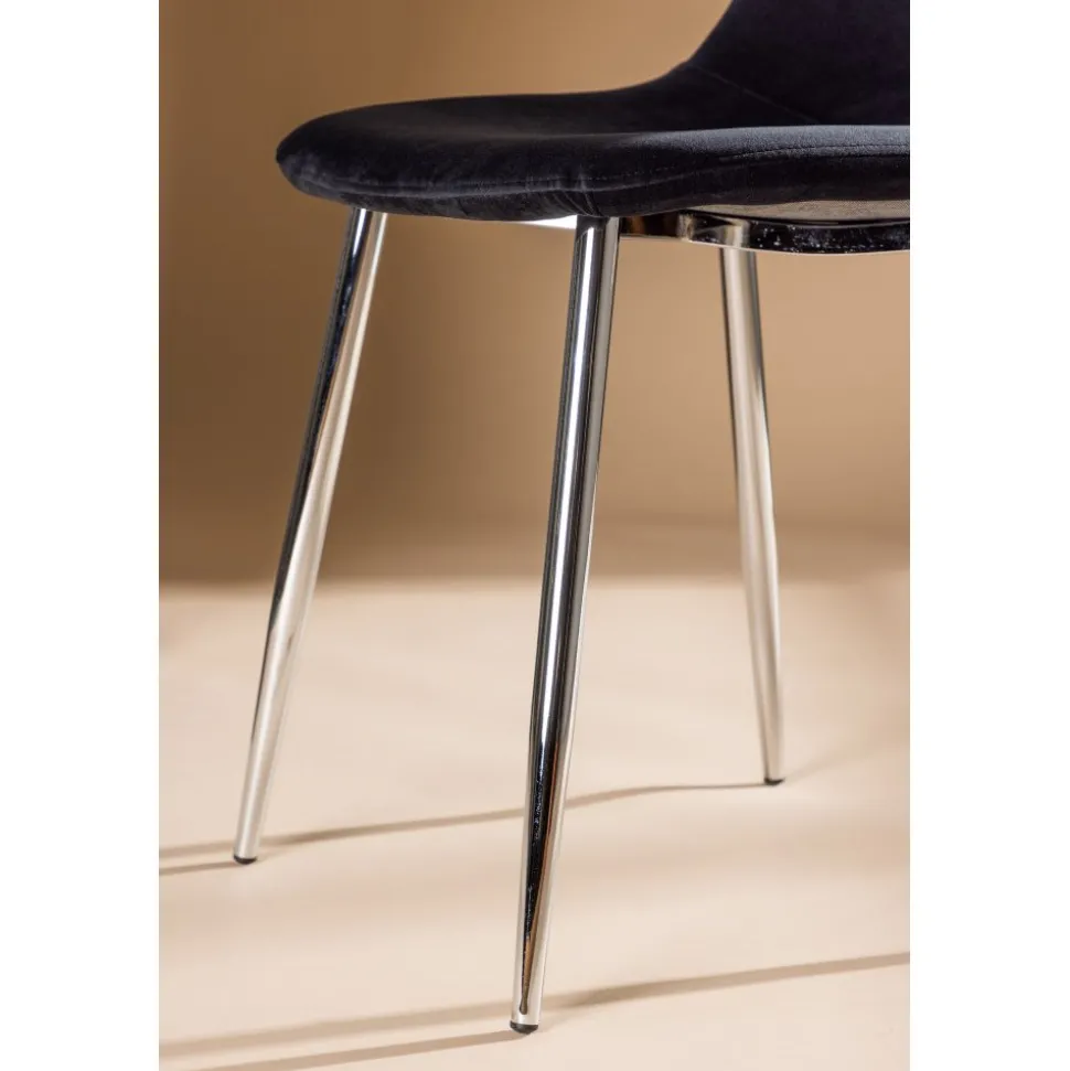Elegant i lyxig anda med en helklädd design med ben i kromad metall, en lätt rundad rygg och sits i smäckert svart sammetstyg med mjuk stoppning för extra komfort. Här slipper du kompromissa mellan bekvämlighet och design. Matcha med ett av våra snygga matbord så får du en komplett matgrupp till hemmets hjärta!