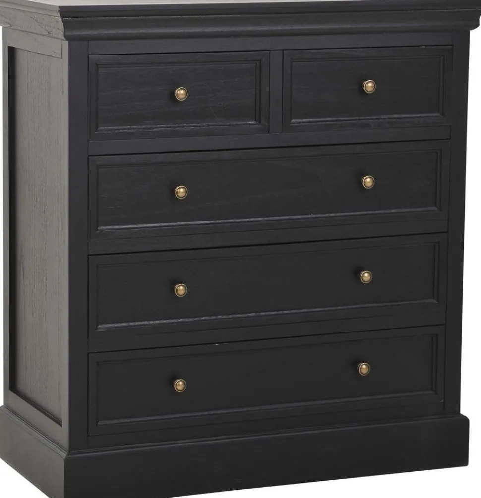Byrå med klassisk design i svart askfanér med bra med förvaring med sina 3 stora lådor och 2 mindre lådor upptill.