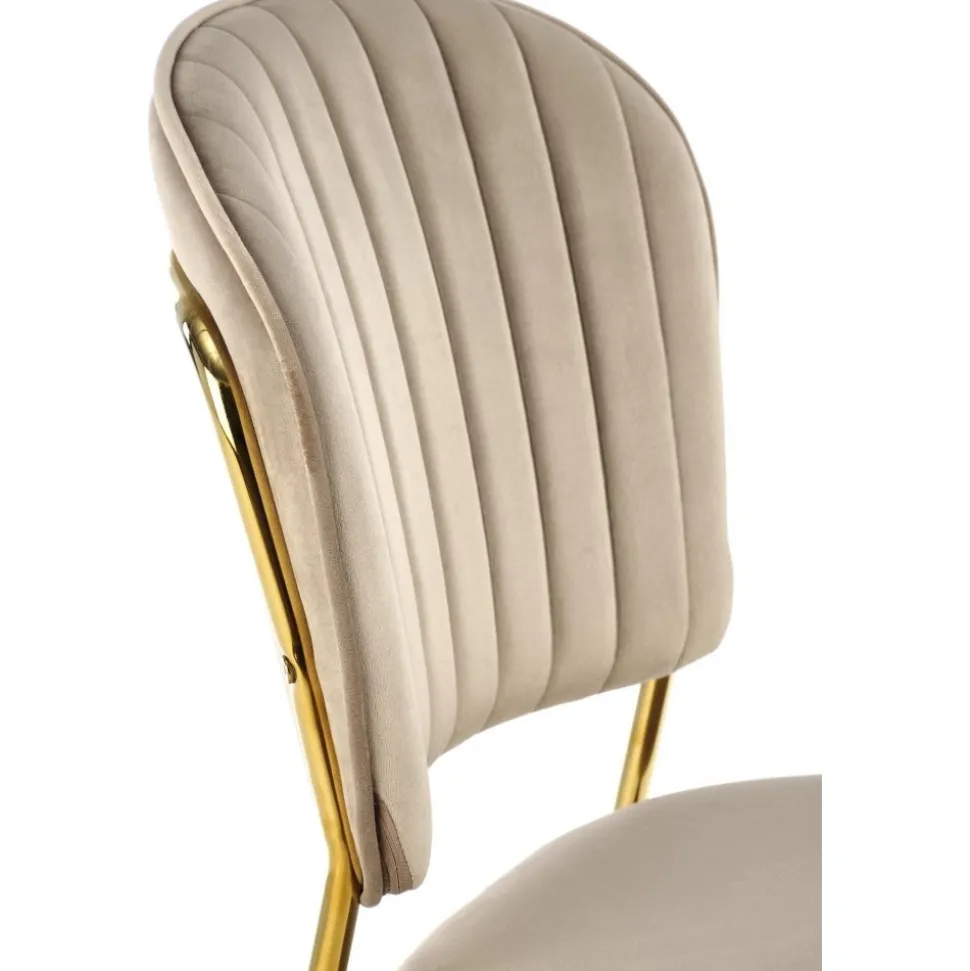 Matstol med klädsel av sammetstyg. Underrede av kromat stål.