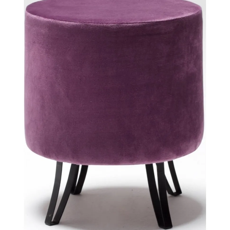 Sittpuff av bokträ och MDF. Klädsel av sammet och ben av metall.
