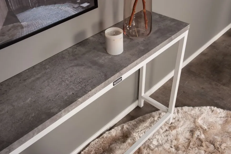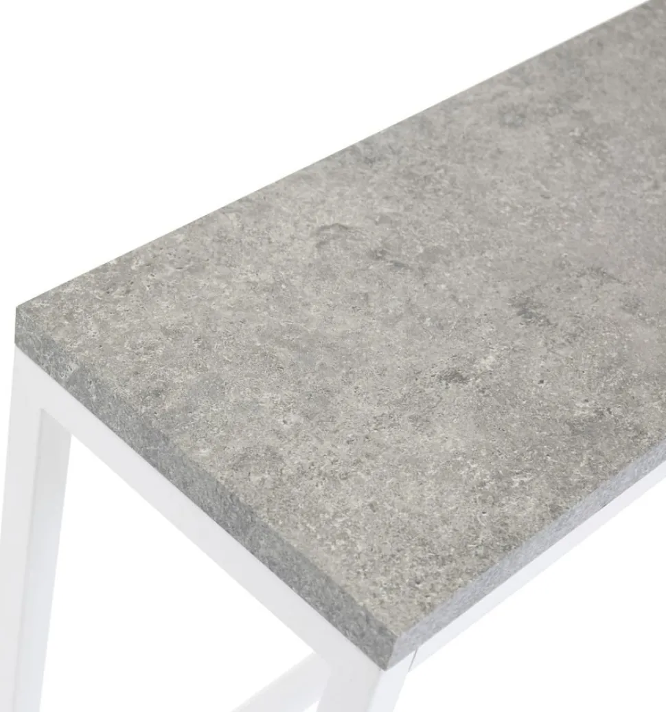Avlastningsbord med toppskiva i MDF med mönster av betong. Underrede i vit metall.